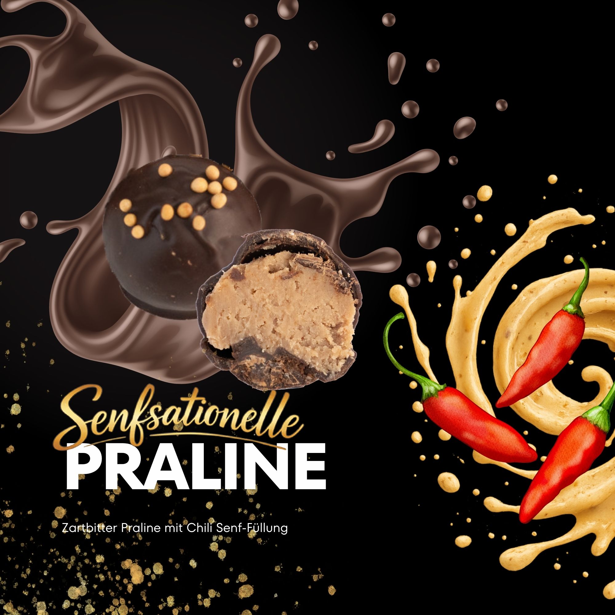 Unsere Senfpralinen verbinden feine Schokolade mit ausgewählten Senfkreationen: Vollmilch trifft auf fruchtigen Feigen Senf, weiße Schokolade verschmilzt mit frischem Orangen Senf und edle Zartbitterschokolade bekommt durch Chili Senf eine aufregende Schärfe. Jede Praline ist ein kleines Kunstwerk aus unserer Manufaktur – ohne Zusatzstoffe, dafür mit viel Liebe zum Detail.
