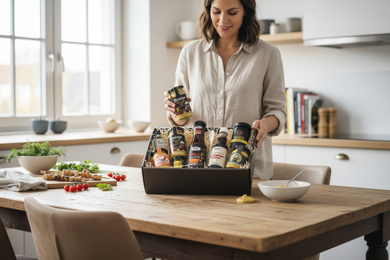 Entdecke den perfekten Präsentkorb für echte Genießer! Gefüllt mit rauchiger Grill Sauce, pikantem Senf und mehr – ideal für deinen Mann, Freund, Partner oder Opa. Dieses Geschenk für Feinschmecker bietet alles, von Senf über Gewürze bis hin zu Schnaps. Liebevoll zusammengestellt und verpackt. Eine pfiffige Geschenkidee zum Einzug, als Dankeschön oder zum Geburtstag – jetzt bestellen und deine Liebsten begeistern!