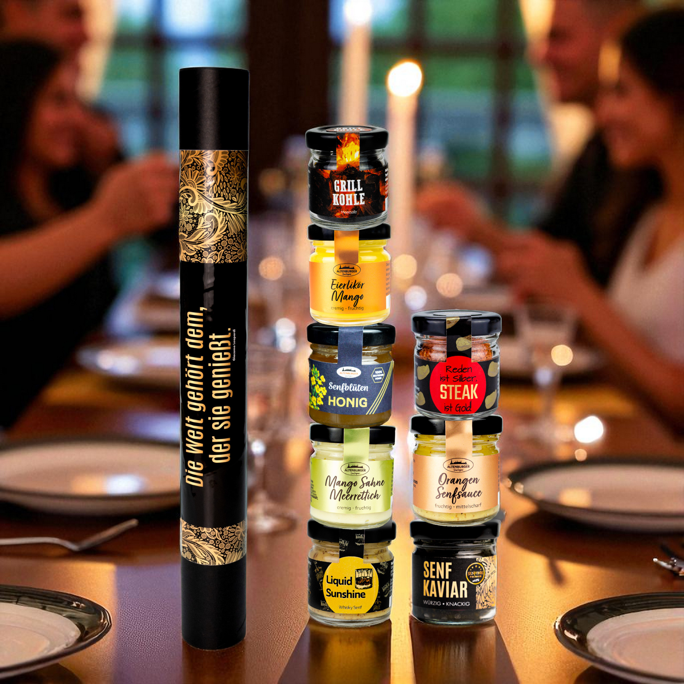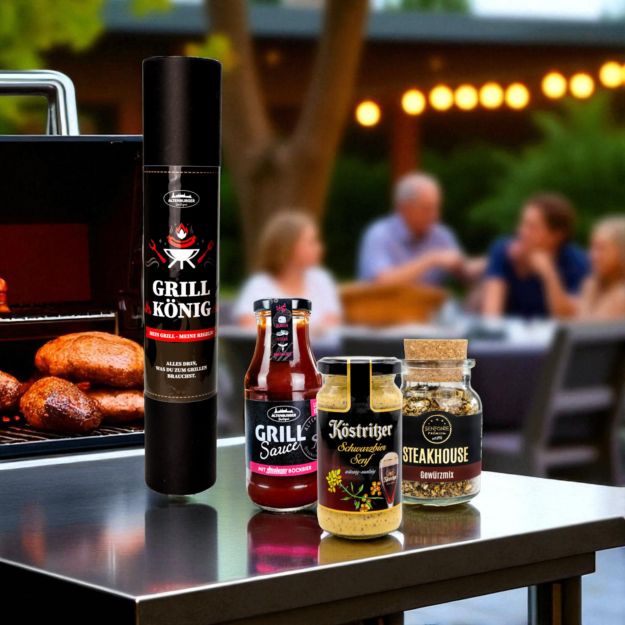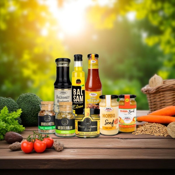 Entdecke den perfekten Präsentkorb für echte Genießer! Gefüllt mit rauchiger Grill Sauce, pikantem Senf und mehr – ideal für deinen Mann, Freund, Partner oder Opa. Dieses Geschenk für Feinschmecker bietet alles, von Senf über Gewürze bis hin zu Schnaps. Liebevoll zusammengestellt und verpackt, inklusive einer persönlichen Postkarte "Schön, dass es dich gibt". Eine pfiffige Geschenkidee zum Einzug, als Dankeschön oder zum Geburtstag – jetzt bestellen und deine Liebsten begeistern!