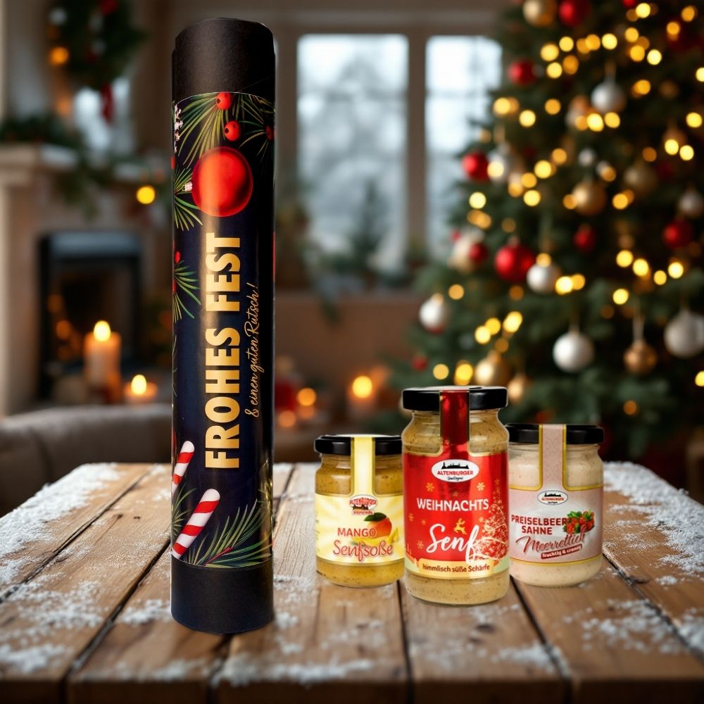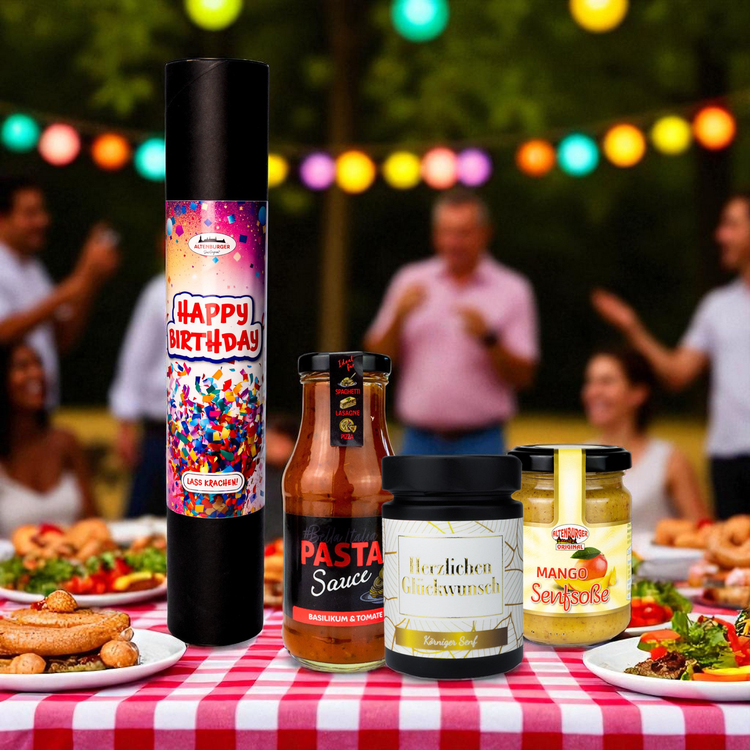 Altenburger Geschenk für Männer gefüllt mit Saucen, Senf und Schnaps