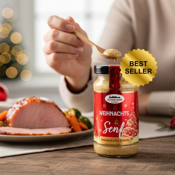 Der süß-scharfe Weihnachtssenf ist kein gewöhnlicher Senf – er ist die festliche Geschmacksexplosion, auf die du das ganze Jahr gewartet hast! Mit seiner einzigartigen Kombination aus weihnachtlicher Süße und feurigem Scharf sorgt er für Freude auf dem Teller und Hitze unterm Mistelzweig. Ideal als Geheimzutat für deine Festtagsküche oder als Geschenk für Senf-Liebhaber, die es besonders würzig mögen. Aber Achtung: Dieses würzige Goldstück gibt es nur einmal im Jahr – greif zu, bevor es der Weihnachtsmann wegschleckt!