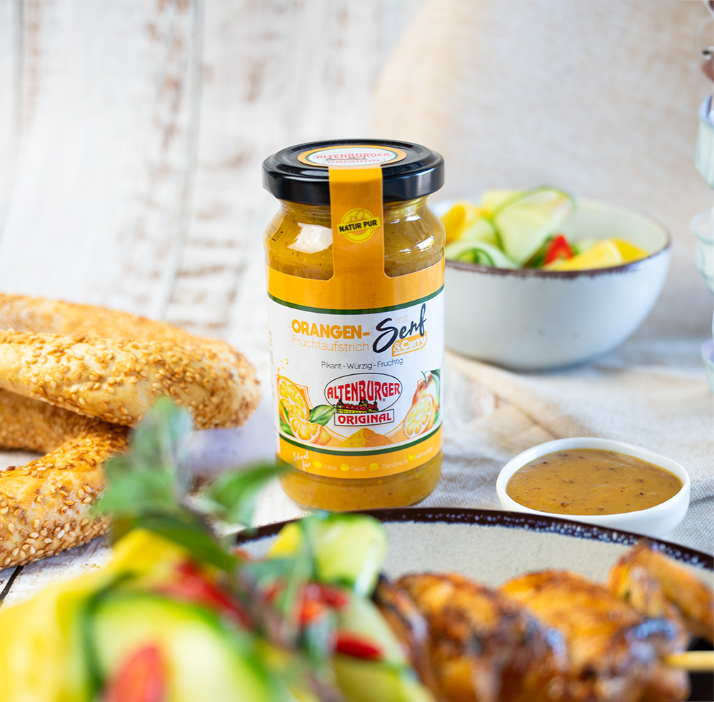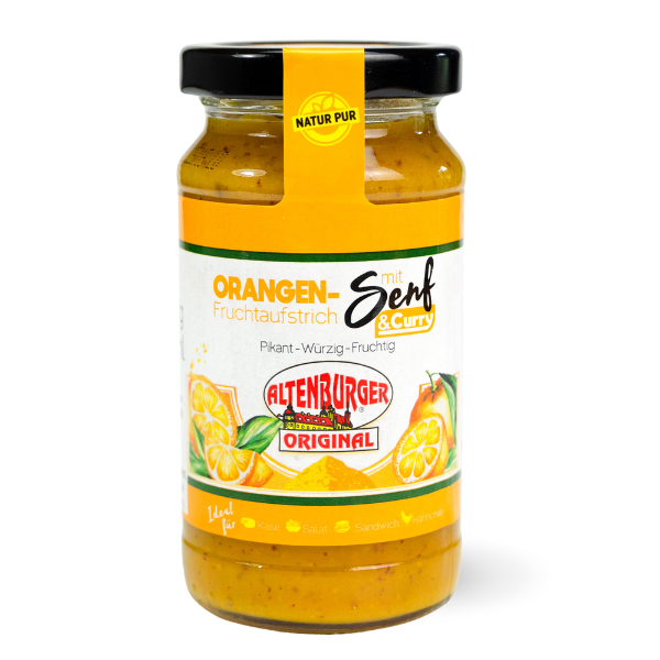 Tauche ein in ein Geschmackserlebnis der besonderen Art mit unserem cremigen Orangen Fruchtaufstrich, verfeinert mit Senf und Curry. Diese einzigartige Kombination aus fruchtig, würzig und exotisch zugleich wird deine Geschmacksknospen auf eine Reise schicken. Die süße Note der Orangen wird perfekt ergänzt durch den würzigen Senf und das exotische Aroma des Currys. Diese Kombination vereint die besten Aromen zu einem harmonischen Geschmackserlebnis. Ob zu Käse als außergewöhnlicher Begleiter, als würzig-spritzige Marinade für Fleisch oder als exotisches Salatdressing und Dip zu gegrilltem Hähnchen – unser Orangen Fruchtaufstrich verleiht deinen Gerichten eine einzigartige Note. Die dezente Schärfe rundet das Geschmackserlebnis ab und verleiht jedem Bissen eine angenehme Würze, ohne zu dominant zu sein.