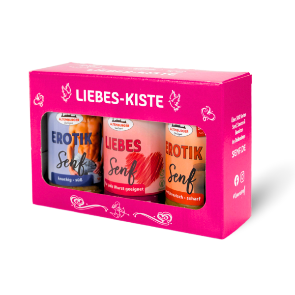 ❤️ Rosen verwelken, Schokolade schmilzt – aber unsere Liebeskiste mit Senf bleibt feurig! 😏🔥 Dieses romantische Senf Geschenkset bringt Würze in jede Beziehung und ist das perfekte Valentinstag Geschenkbox mit Senf für Paare, die Geschmack beweisen wollen. Von süß-verführerisch bis scharf-heiß – hier gibt’s scharfen Senf als Liebesgeschenk, das für kulinarische Höhepunkte sorgt.