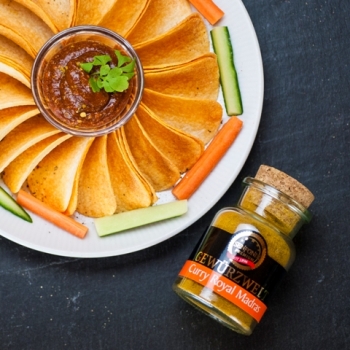 Herrlich würzig und geschmackintensiv kommt unser Curry Royal Madras daher – die meisterliche Mischung nach südindischer Originalrezeptur aus Koriander, Bockhornklee, Cumin, Paprika, Fenchel, Ingwer, Pfeffer, Chili, Senfsaat, Piment, Knoblauch und Kardamom verleiht deinen Gerichten exotische Schärfe aus Fernost. Das enthaltene feinvermahlene Kurkuma gibt dem Curry seine typische goldgelbe Farbe und gibt deinen Speisen einen warmen Ton. Besonders lecker schmeckt Curry Royal Madras in Chicken-Curry mit Kokosmilch verfeinert und mit Reis serviert, als Sauce zu weißem Fisch oder Meeresfrüchten, zur Verfeinerung von Linsen- und Kürbissuppen oder in Mayo- oder Ketchup verrührt als fruchtig, scharfen Dip für dein Grillzeug. Auch zu unserer landestypischen Currywurst kannst du das Currypulver verwenden!