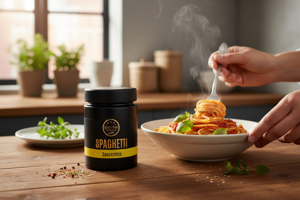 Das Spaghetti Soßen Gewürz von Senfonie Premium ist deine Geheimzutat für die perfekte Pastasoße.