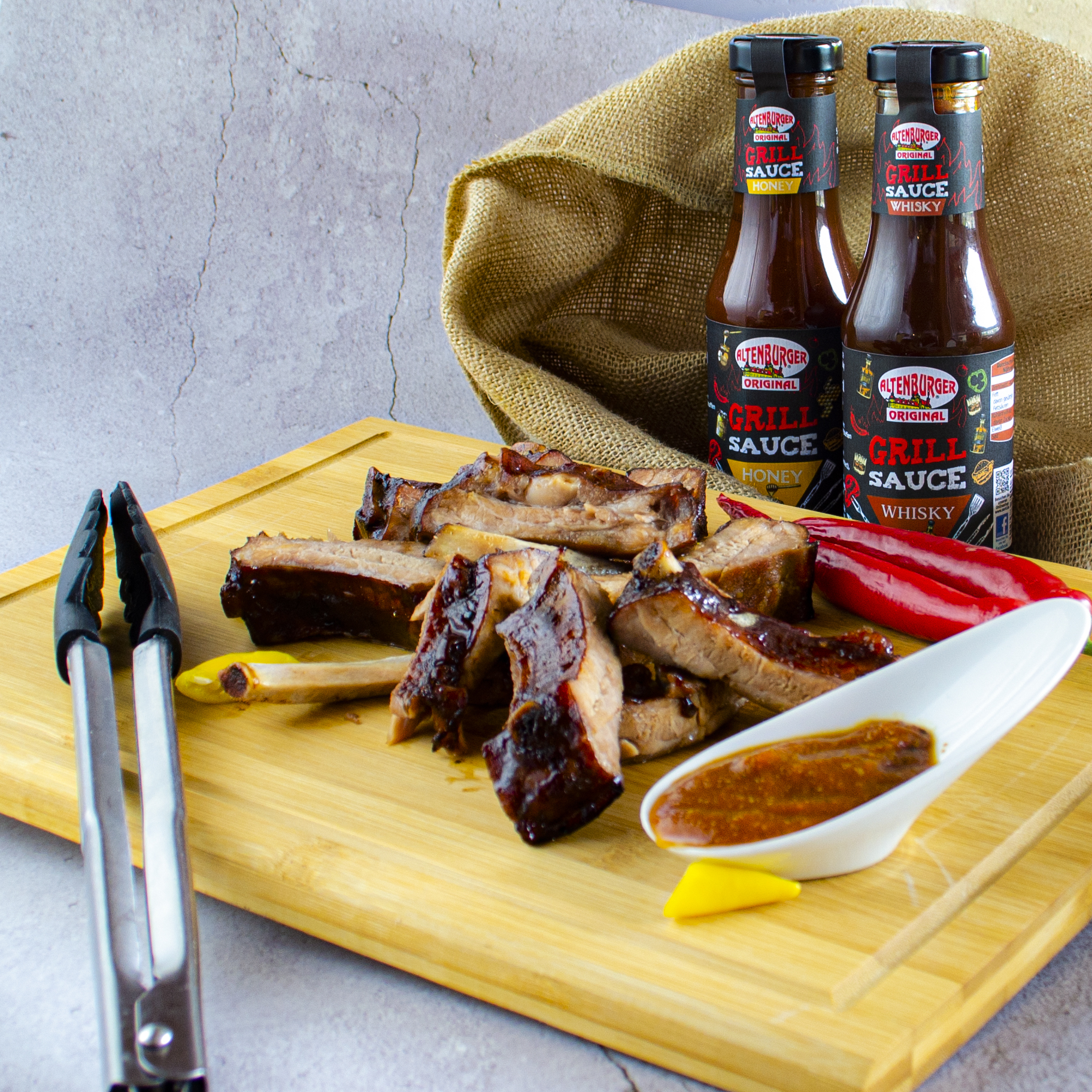 Die milde Schwester unter unseren Grillsaucen Vollmundig fruchtige sonnengreifte Tomaten, die betörende Honigsüße und ein zart schmelzender Hauch von Geräuchertem zaubert dir feine Würze auf den Teller. Ideal zu allen Spaghetti Gerichten, zu Gebratenem, zu Geflügel, zu Lamm, Chicken Wings oder Reisgerichten. Ideal auch zum Einpinseln von Spareribs, Hähnchenkeulen oder Steaks.
