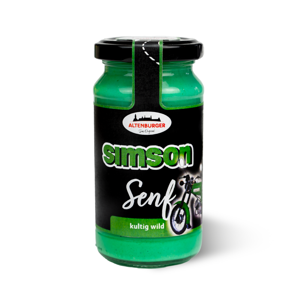 "Brumm, brumm" - das unverwechselbare Summen des Zweitakters ist nicht nur Musik in den Ohren echter Biker, sondern auch Inspiration für unseren einzigartigen Simson-Senf! Mit seinem knackigen Grünton und der mittelscharfen Würze ist dieser Senf der perfekte Begleiter für all deine Abenteuer auf der "Simme". Egal, ob zu Sandwiches, Wienern oder frisch gebratenen Original Thüringer Bratwürsten - dieser Senf bringt den Geschmack der Straße direkt auf deine Zunge. Ob auf dem Rastplatz oder mitten im Nirgendwo - mit unserem Simme-Senf bist du bestens für neue Abenteuer ausgestattet. Einfach den Deckel abschrauben, großzügig aufs Brot oder die Bratwurst schmieren und schon kann die nächste Tour losgehen!