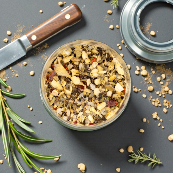 | Zutaten | Pfeffer, Meersalz, Knoblauch, Zwiebeln, Rohrzucker, Chili, Thymian, Basilikum, Sonnenblumenöl |
