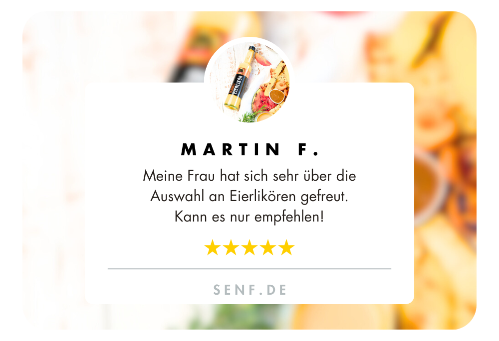 Wenn sich dein Eierlikör etwas absetzt, liegt das an den natürlichen Zutaten – ganz normal und kein Grund zur Sorge. Einfach kurz schütteln und er ist wieder cremig.