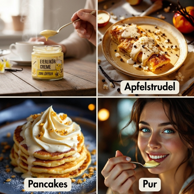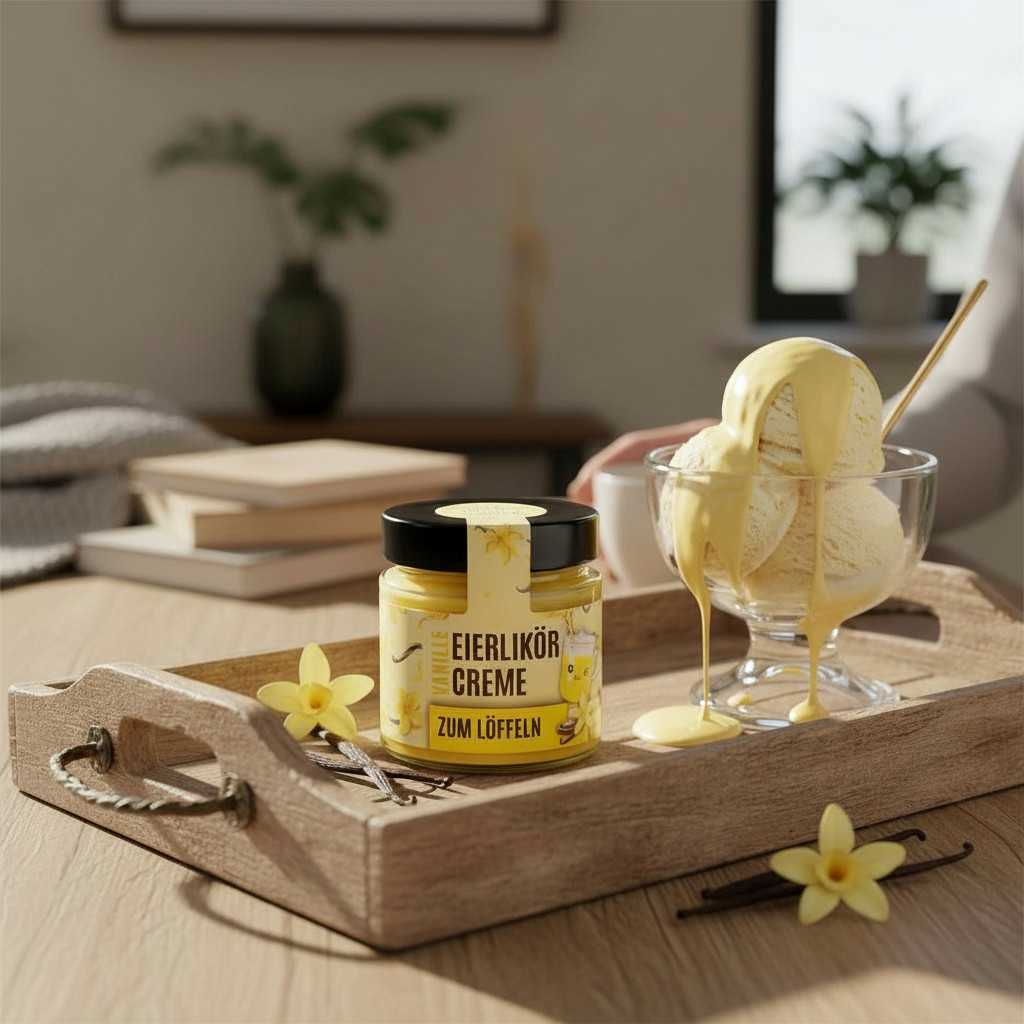 Diese Eierlikör-Vanille-Creme begeistert mit einer unglaublich samtigen Textur und einem intensiven, warmen Vanillearoma, das jeden Moment zu etwas Besonderem macht. Perfekt zum Verfeinern von Desserts, als Topping oder purer Genuss direkt vom Löffel – ein cremiger Verführer, der schmeckt wie ein kleiner Luxus im Alltag.