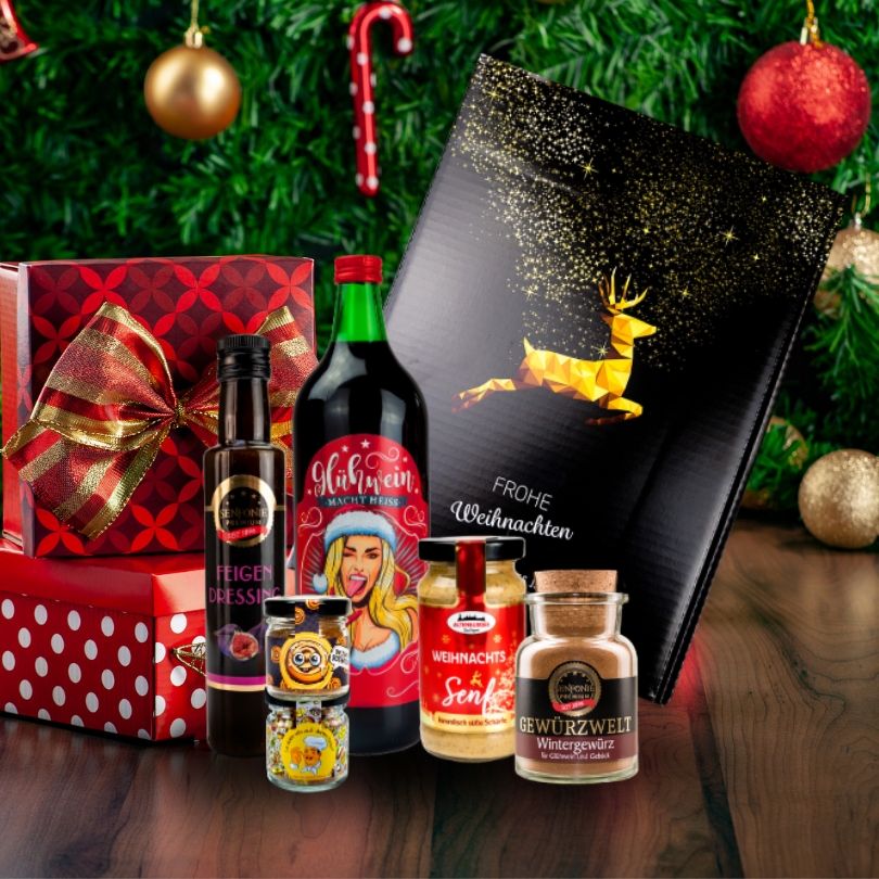 Mach die Feiertage noch festlicher mit der "Frohes Fest" Geschenkbox – der ideale Begleiter für deine Liebsten, Familie, Freunde oder Kollegen! Diese Box ist gefüllt mit allem, was die Weihnachtszeit kulinarisch unvergesslich macht: