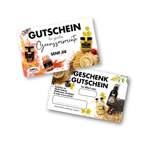 Aromatischer Walnuss-Senf: Ein einzigartiger Senf, der die nussige Tiefe von Walnüssen mit der klassischen Senfnote kombiniert. Ideal für edle Braten, als Brotaufstrich oder für besondere Vorspeisen.