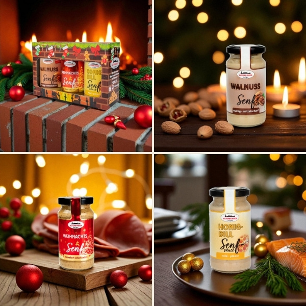 Süß-Scharfer Weihnachtssenf: Ein Fest der Aromen mit einer perfekten Balance zwischen süßen Noten und würziger Schärfe. Ideal für festliche Fleischgerichte und als außergewöhnlicher Dip.