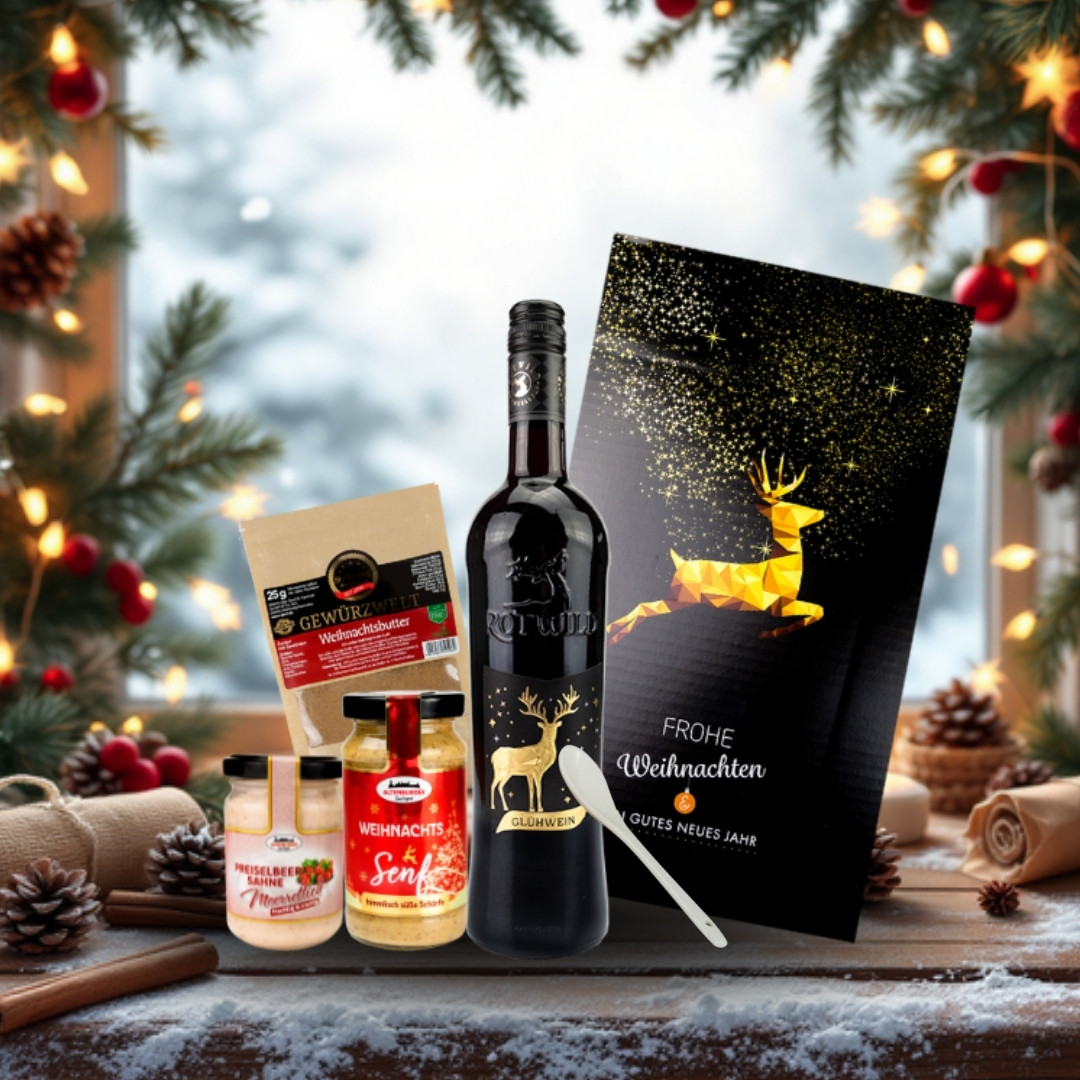Verleihe Weihnachten das gewisse Extra mit unserer "Weihnachtsschmaus"-Geschenkbox! Diese festliche Mischung aus fruchtigem Meerrettich, süß-scharfem Weihnachtssenf, würzigem Glühwein und Gewürz bringt jeden Geschmack zum Strahlen. Ideal für Freunde, Kollegen und Mitarbeiter, die das Besondere lieben. Ob als kulinarische Überraschung oder zum Verfeinern der Festtagsspeisen – mit dieser Box zauberst du garantiert Freude auf den Tisch. Weihnachtsgenuss leicht gemacht! Verschenke Geschmack und Genuss pur – das ideale Geschenk für alle, die in der Weihnachtszeit das Beste schätzen!