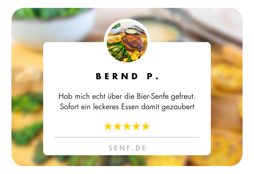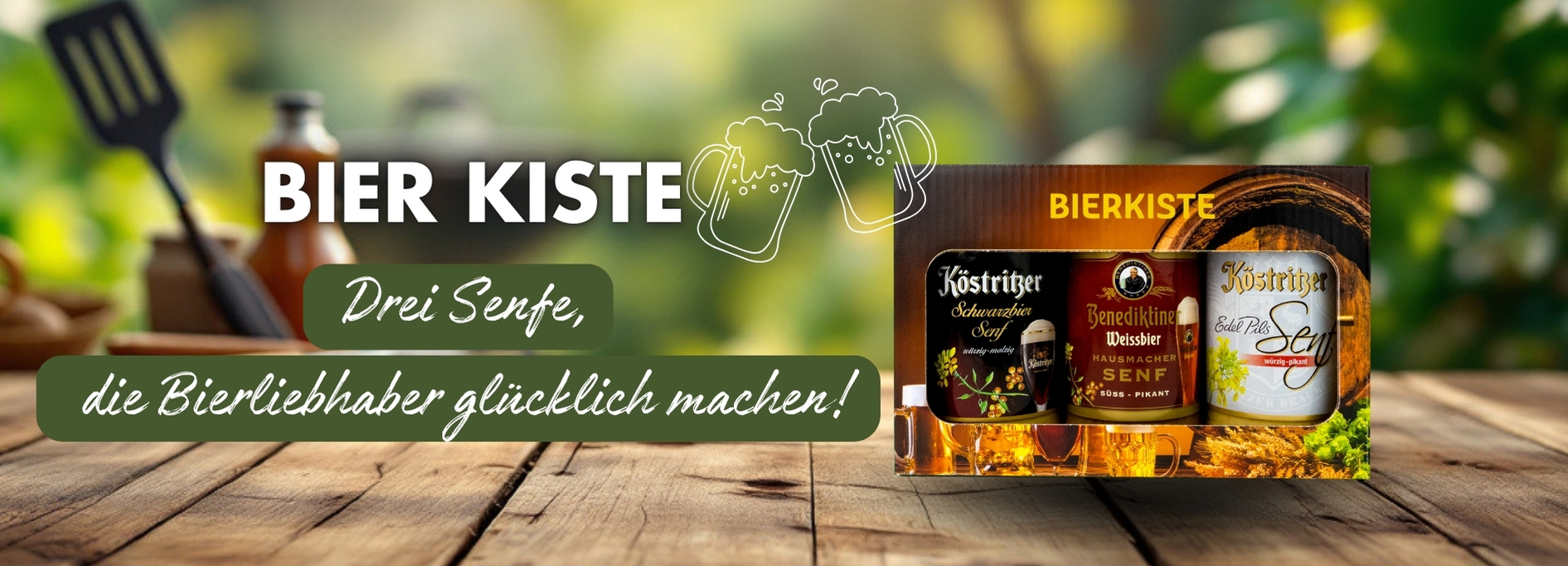 🍻 Mit echtem Bier hergestellt – Köstritzer Schwarzbier Senf (unser Bestseller), Edel Pils Senf und süßer Benediktiner Weißbier Senf, alle mit der jeweiligen Biersorte in unserem Manufaktur-Verfahren verarbeitet.