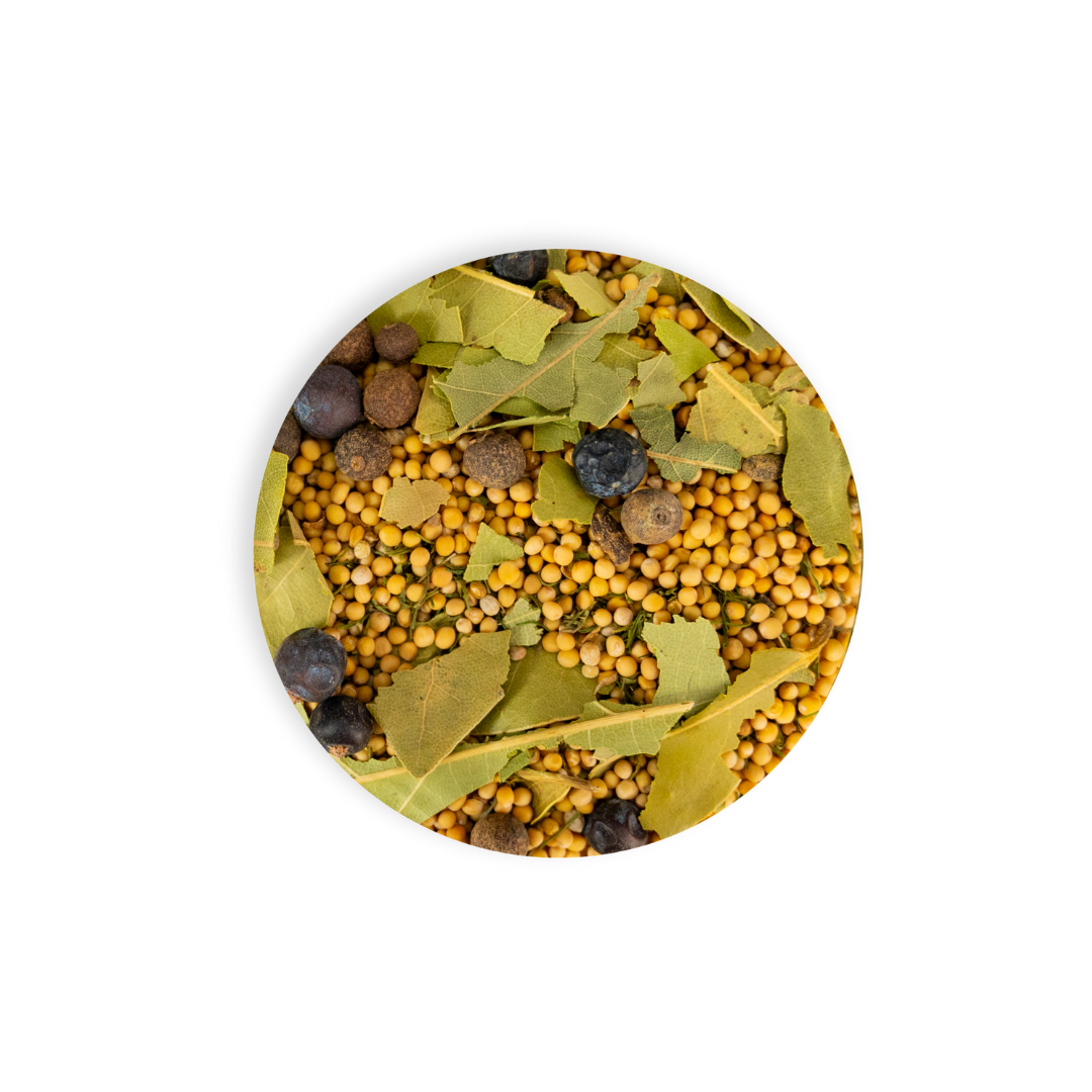 Zutaten | Senfkörner, Dillspitzen, schwarzer Pfeffer, Piment, Wacholderbeeren, Lorbeerblätter, Nelken |