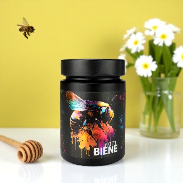 Flotte Biene mit Hummelhüfte sucht saftiges Steak zum Landen! Mit ihrem flotten Hintern & stacheligen Humor wickelt sie dich um den Finger, bevor du "Summ,Summ,Summ" sagen kannst. Dieser honigsüße Senf macht dich auch so happy-BEE! ♥ Mittelscharfer Senf mit Honig schmeckt hervorragend auf Käse, Räucherfisch oder mit Öl & frischen Kräutern als Honig-Senf-Dressing auf knackfrischen Salaten, Antipasti und Obstsalaten.