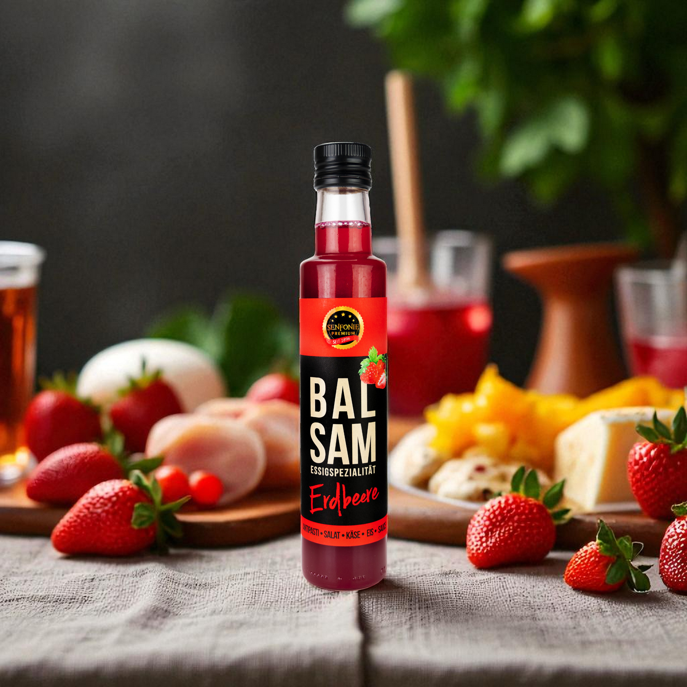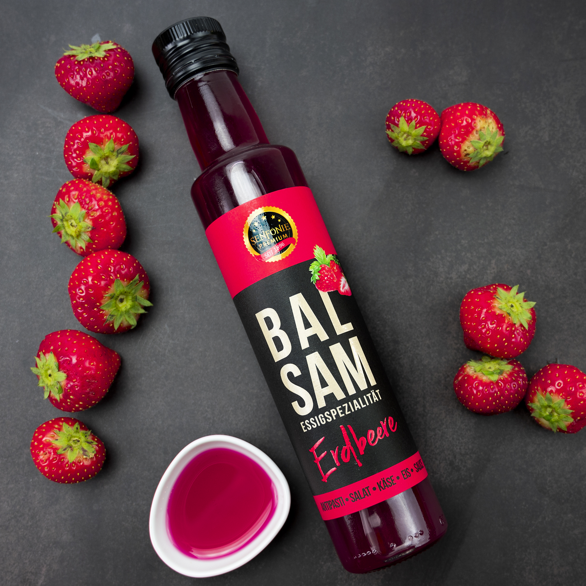 Tauche ein in den sommerlichen Genuss mit unserem Fruchtbalsam Erdbeere! Unser Fruchtbalsam Erdbeere ist die perfekte Ergänzung für eine Vielzahl von Gerichten. Ob du ihn für Salate, Tomate Mozzarella, Burrata, frisches Obst und Gemüse oder zum Verfeinern von Desserts verwendest - er verleiht jedem Gericht eine einzigartige Note. Genieße den aromatischen Geschmack sonnengereifter Erdbeeren, der perfekt mit der pikanten Würze des Essigs harmoniert. Dieser Fruchtbalsam ist nicht nur eine Geschmacksexplosion, sondern auch ein echter Hingucker auf deinem Teller! ??