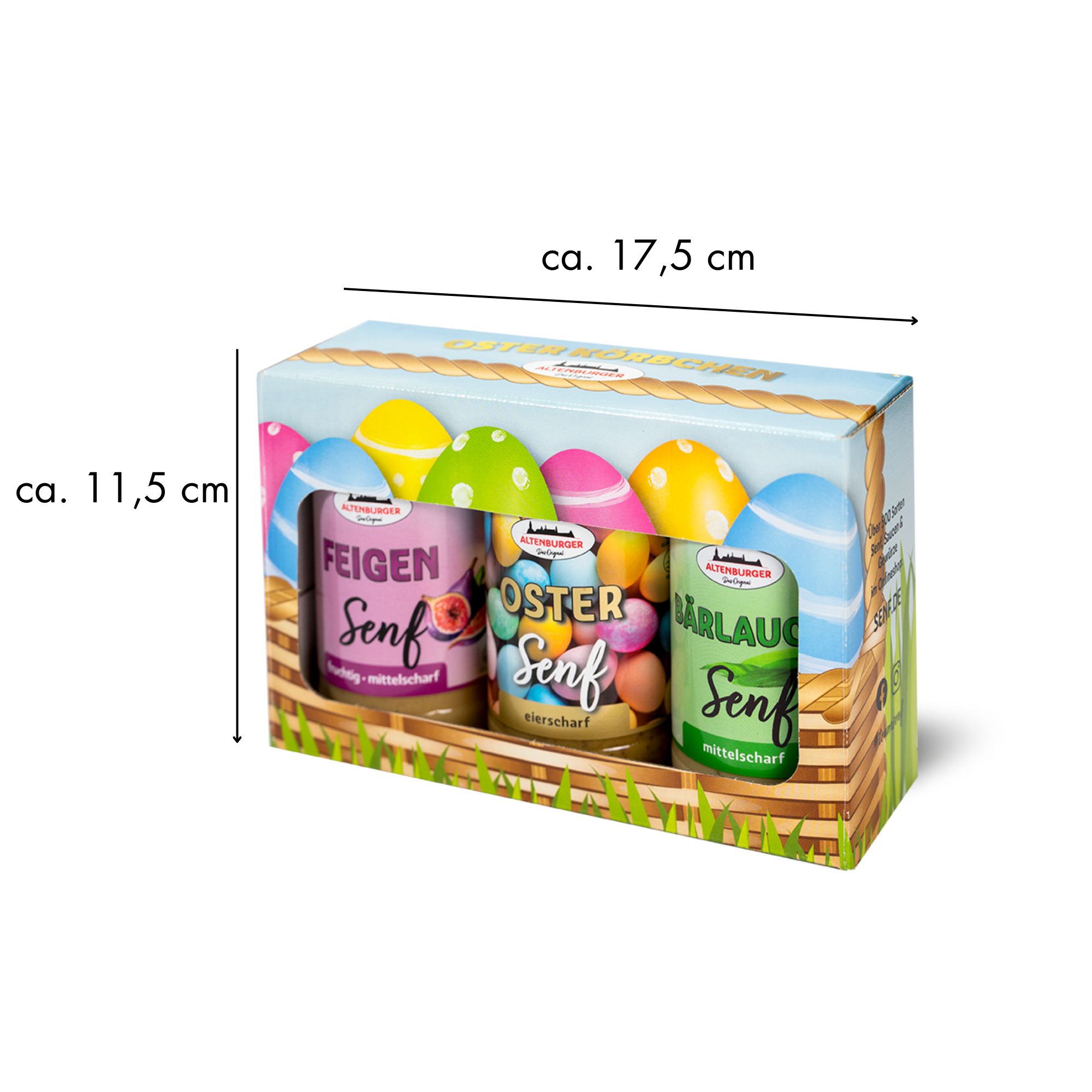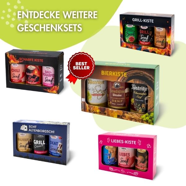 Verwandle deine Osterzeit in ein Fest des Geschmacks! Dieses einzigartige Set bringt drei handgefertigte Senfsorten direkt auf deinen Tisch – hergestellt mit Liebe und ohne chemische Zusätze.