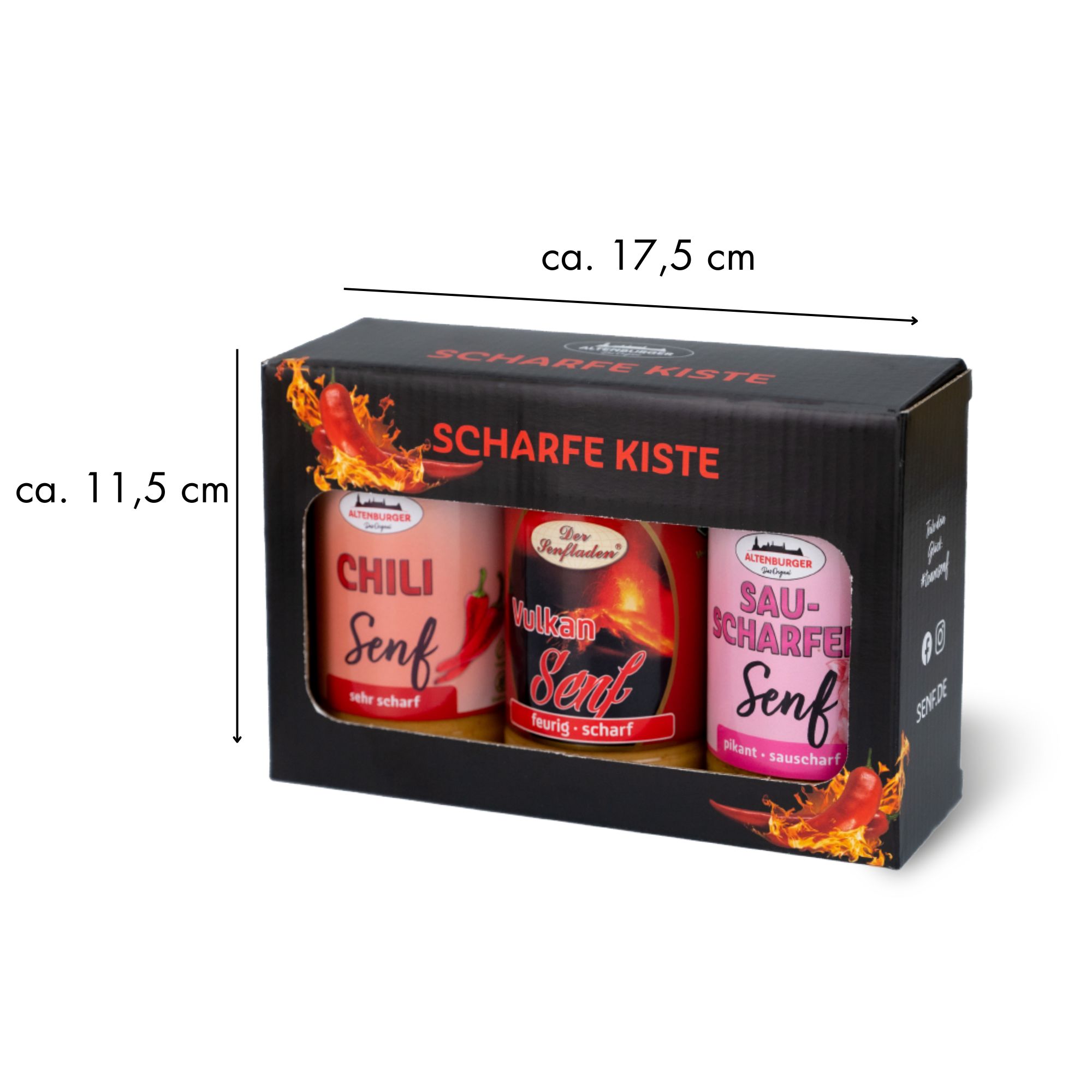 Ob zum Geburtstag, als Mitbringsel zur Grillparty oder als scharfes Statement unter Feinschmeckern – die Scharfe Kiste ist das perfekte Geschenk für alle, die nicht auf lauwarmen Geschmack stehen. Dieses Senf-Geschenkset mit drei extra scharfen Sorten bringt ordentlich Feuer auf den Teller – und macht Schluss mit langweiligen Massenprodukten aus dem Supermarkt.