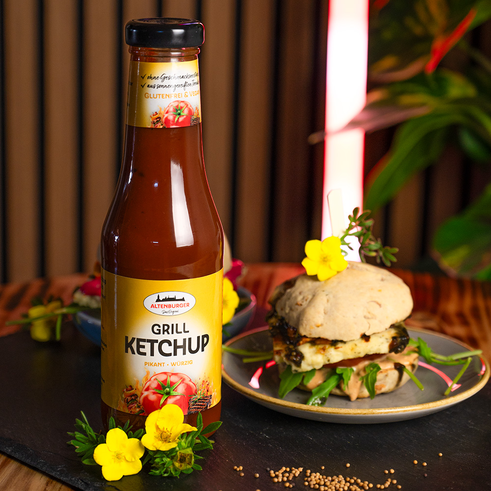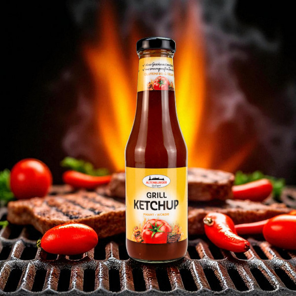 Unser Grill Ketchup ist kein gewöhnlicher Ketchup – sondern dein neues BBQ-Statement! Mit sonnengereiften Tomaten, fruchtiger Tiefe und einer pikanten Schärfe bringt er alles mit, was dein Grillherz höher schlagen lässt. Ob als Klassiker zu Wurst & Steak oder als Dip zu Chips & Nachos – dieser Ketchup ist der Boss am Buffet! Der Grill Ketchup ist das i-Tüpfelchen für dein BBQ-Erlebnis. Vielseitig einsetzbar – ob als Marinade, Dip oder klassisch zum Fleisch – und dabei immer ein Volltreffer für Genießer:innen, die auf ehrlichen Geschmack setzen.