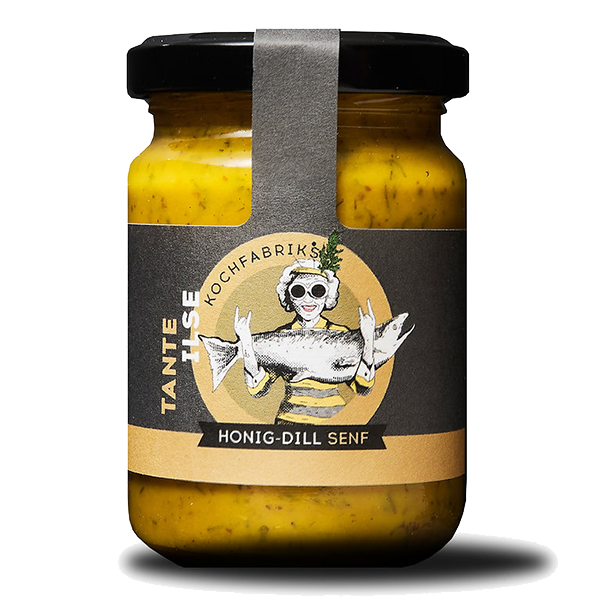Tante Ilse, jeder will se. Auch der Dill will! Einmal zusammengetroffen, konnten wir die honigsüße Tante und ihren Freund Dill nicht mehr trennen. Die meiste Zeit verbringen Sie nun beim Angeln - ein unschlagbares Team, das sich perfekt ergänzt. Denn Tante Ilse Honig-Dill ist nicht nur eine Geschmacksexplosion, sondern auch eine Hommage an die Liebe zur Natur und zur kulinarischen Raffinesse. Mit ihrem süß-scharfen Aroma veredelt sie jedes Gericht und harmoniert besonders hervorragend mit geräuchertem oder gebeiztem Lachs. Egal ob beim Picknick am See oder beim festlichen Dinner zuhause, Tante Ilse und Dill sind einfach unwiderstehlich!