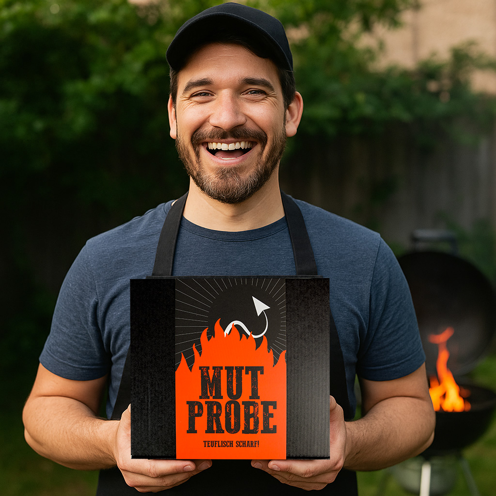 Die Mutprobe beginnt mit unserer köstlichen Barbecue-Sauce. Mit ihrem rauchigen Geschmack und der perfekten Würze verleiht sie jedem Grillgut eine unwiderstehliche Note. Diese Sauce ist ein wahrer Gaumenschmaus und sorgt für unvergessliche Grillmomente. Der scharfe Senf in der Geschenkbox ist wie ein Adrenalinstoß für deinen Geschmackssinn. Mit seiner intensiven Schärfe und seinem unverwechselbaren Aroma verleiht er deinen Sandwiches, Burgern und Würstchen den ultimativen Kick. Genieße den Nervenkitzel, den dieser Senf mit sich bringt! Das feurige Jalapeno Chili ist ideal für alle, die nach neuen Herausforderungen suchen und sich an ihre Grenzen wagen möchten. Es ist wie eine Mutprobe für deinen Gaumen - ein Abenteuer, das du mit jedem Bissen erlebst. Gefüllt mit umweltfreundlichem Original PresentFill. Chlor- und säurefrei, 100% recyclingfähig und Made in Germany!