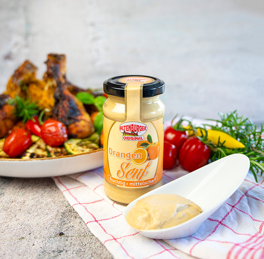 | Verkehrsbezeichnung | mittelscharfer Senf verfeinert mit Orangen Fruchtaufstrich |