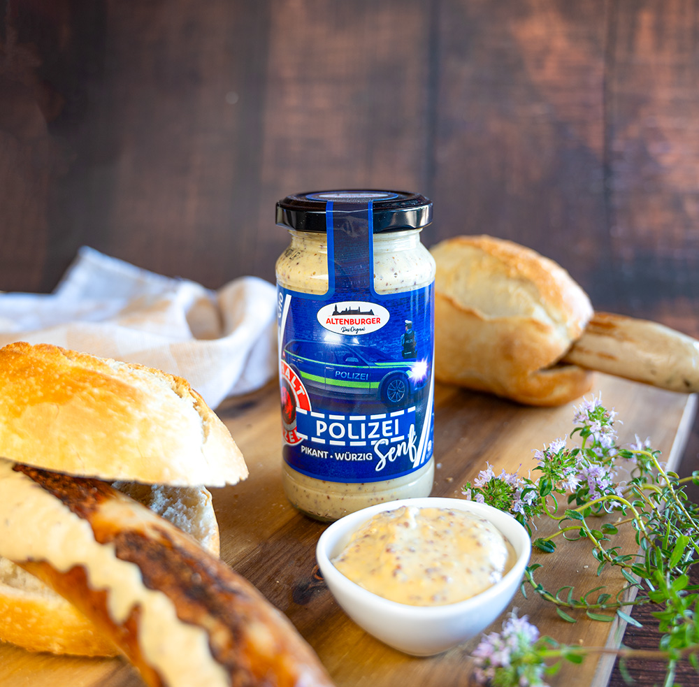 Bist du bereit für den ultimativen Geschmacksermittler? Unser würziger, kerniger Polizei Senf ist der Retter im Einsatz, wenn es um die Wurst geht! Mit seiner unverwechselbaren Mischung aus Schärfe und Aroma sorgt er für echtes Gaumen-Gesetz und lässt keine Geschmacksverbrechen zu. Dieser Senf ist nicht nur ein kulinarischer Genuss, sondern auch ein Statement. Zeige deine Wertschätzung für die Helden des Alltags mit diesem speziellen Senf, der jedem Würstchen den nötigen Pfiff verleiht. Auf der Suche nach einem originellen Geschenk für einen Polizeibeamten oder eine Polizeibeamtin? Unser Polizei Senf ist die ideale Wahl! Verpackt in einem coolen Design, ist er garantiert ein Hingucker und ein Gaumenschmaus zugleich. Ob für saftige Grillsteaks, herzhafte Bratwürste oder als geheime Zutat in deiner Lieblingsmarinade – unser Polizei Senf ist vielseitig einsetzbar und macht jedes Gericht zu einem echten Geschmackserlebnis. Auch auf Senfeiern ist er der Star des Abends!
