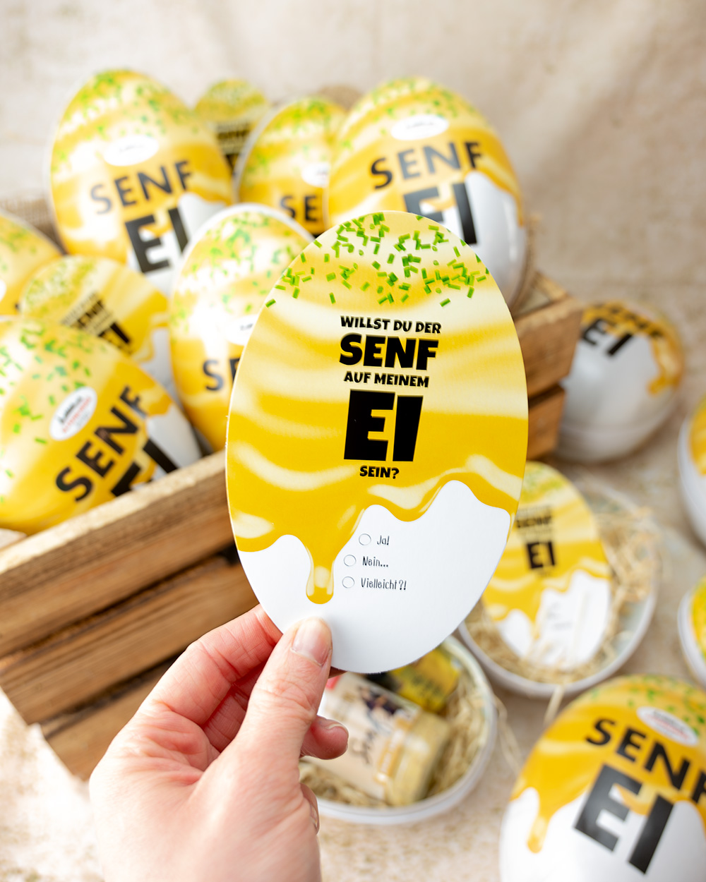 Diese humorvolle Postkarte „Willst du der Senf auf meinem Ei sein?“ ist das perfekte Geschenk für Senfei-Liebhaber und Menschen, die du auf besondere Weise sagen möchtest, dass du sie magst. Versteckt im größten Senfei der Welt, gefüllt mit feinem Bauernsenf, aromatischem Rühreigewürz und einem praktischen Gewürzschäufelchen, wird aus dieser Geste eine unvergessliche Überraschung.