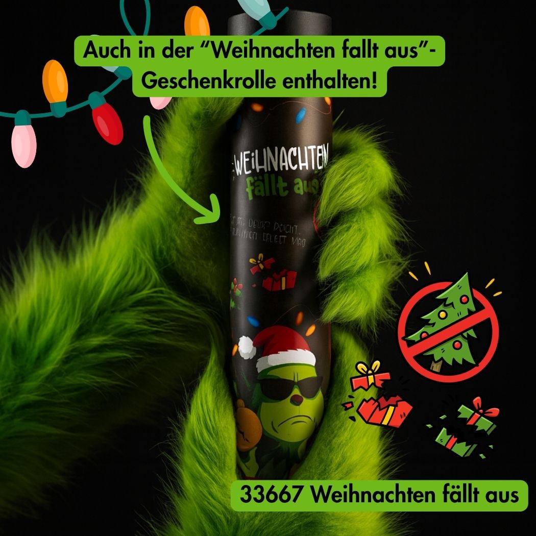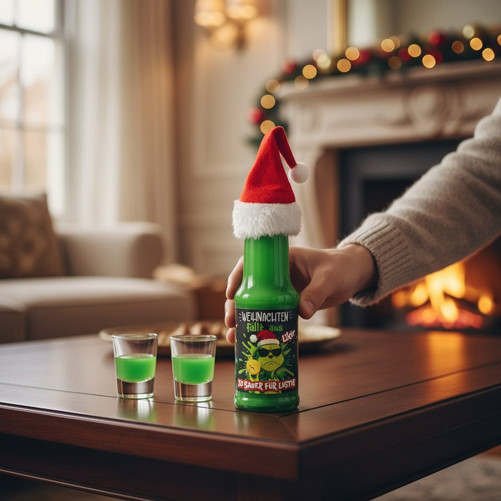 Für alle, die schon beim ersten „Last Christmas“ das Radio ausschalten, kommt jetzt die ultimative Rettung: unsere „Weihnachten fällt aus“-Serie – frech, grün und garantiert nicht besinnlich. Der quietschgrüne Weihnachtsmuffel-Senf bringt mit seinem würzig-scharfen Charakter die richtige Portion freche Säure auf den Teller – perfekt für alle, die beim Festtagsbraten lieber die Augen rollen, statt Kerzen anzünden. Dazu gibt’s die Geschenkrolle „Weihnachten fällt aus“, ein rebellisches Trio mit Senf, NIX-Gewürz und dem legendären grünen Likör – das Must-have. Unser grüner Likör mit kultigem Grinchmotiv schmeckt cremig-fruchtig nach Apfelkick und Auflehnung – der perfekte Anti-Weihnachtstrunk für Shots, auf Eis oder als „frohe Botschaft“ an übermotivierte Weihnachtsfans. Wer es lieber handlich mag, greift zum Mini Sixpack: sechs freche Minis mit null Bock auf Besinnlichkeit, ideal zum Teilen oder zum Selbstbehalten.