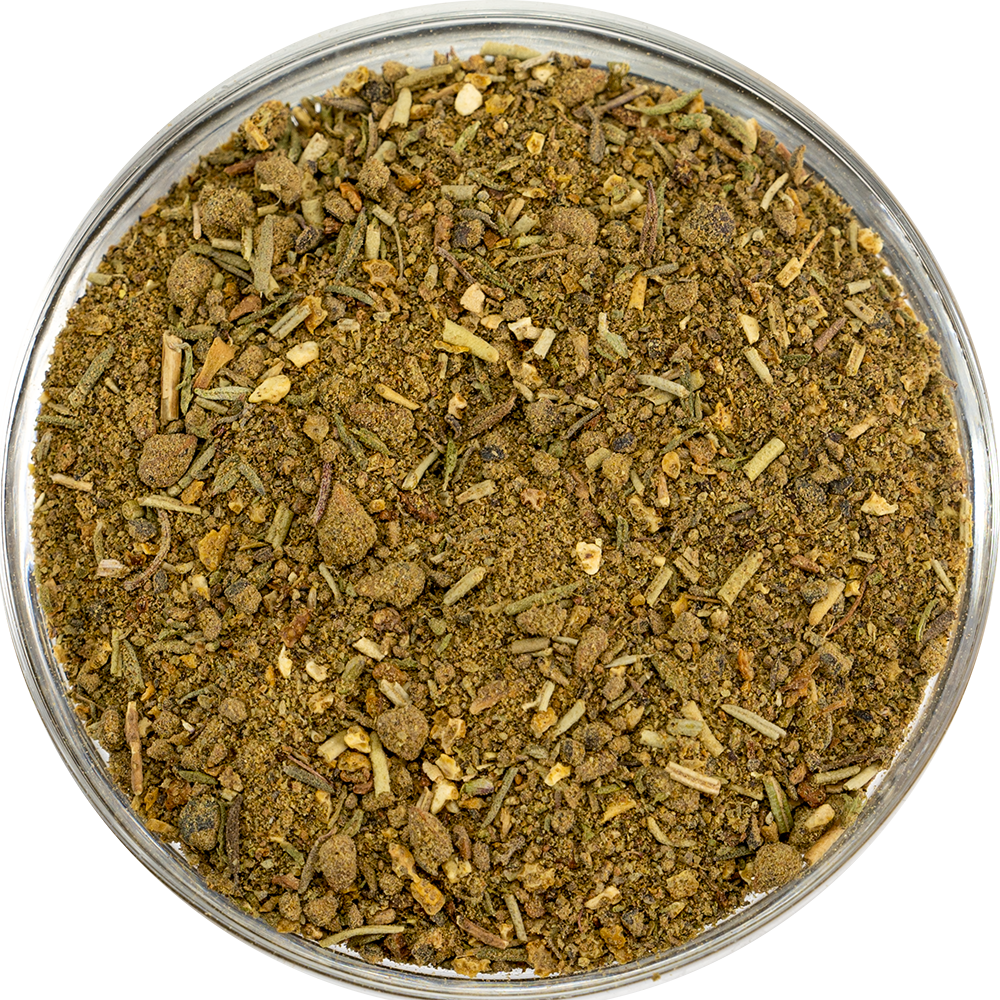 | Zutaten | Grüner Pfeffer, Wacholderbeeren, Orangenschalen, Muskatblüte, Zitronenschale, schwarzer Pfeffer, Thymian, Rosmarin, Piment, Lorbeerblätter |