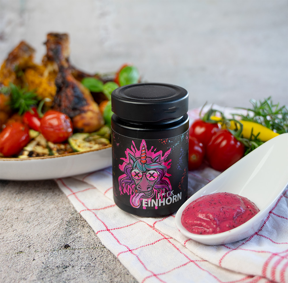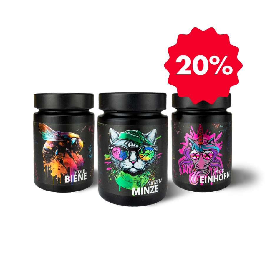 Das Tierisch Leckere Senf-Geschenket ist genau das Richtige für alle die es animalisch mögen - perfekt für den nächsten Mädelsabend, zum Grillfest, als Geburtstagsgeschenk oder als Tasting-Set für den nächsten Familien-Spieleabend: KATZENMINZE - Pfefferminz Senf: Kauf' nicht die Katze im Sack - sondern hol dir den quitsch-grünen Senf mit Pfefferminzlikör nach Hause! Diese Mischung lässt dich zur Wildkatze mit frischem Atem werden - klingt verrückt? Ist es auch! Unser Pfefferminze-Senf "Katzenminze" schmeckt so lecker zum gegrilltem Fleisch, auf Burger & Sandwiches, zu würzigem Käse oder als Verfeinerung von Eier- und Nudelsalaten. FLOTTE BIENE - Honig Senf: Mit Hummelhüfte sucht saftiges Steak zum Landen! Bei uns brauchst du nicht auf Bienen kauen - dieser honigsüße Senf macht dich auch so happy-BEE! Mittelscharfer Senf mit Honig schmeckt hervorragend auf Käse, Räucherfisch oder mit Öl & frischen Kräutern als Honig-Senf-Dressing auf knackfrischen Salaten, Antipasti und Obstsalaten. F*CK EINHORN - Pinker Senf: Du hast doch wieder am Regenbogen geleckt - hol dir verrücktes, mittelscharfes Glück im Glas und schmier' es dir aufs Butterbrot! Dieser leuchtend-pinke Senf mit milder Süße schmeckt hervorragend zur Wiener, Bratwurst, Wurst und in Salaten & Saucen gibt es eine coole Farbe. Mach anderen die Zukunft PINK & verschenke das F*CK EINHORN.