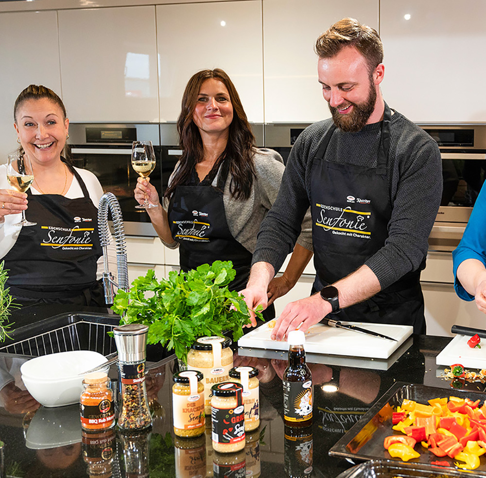 Inklusive einer hochwertigen Kochschürze „Senfonie“ zum mit nach Hause nehmen