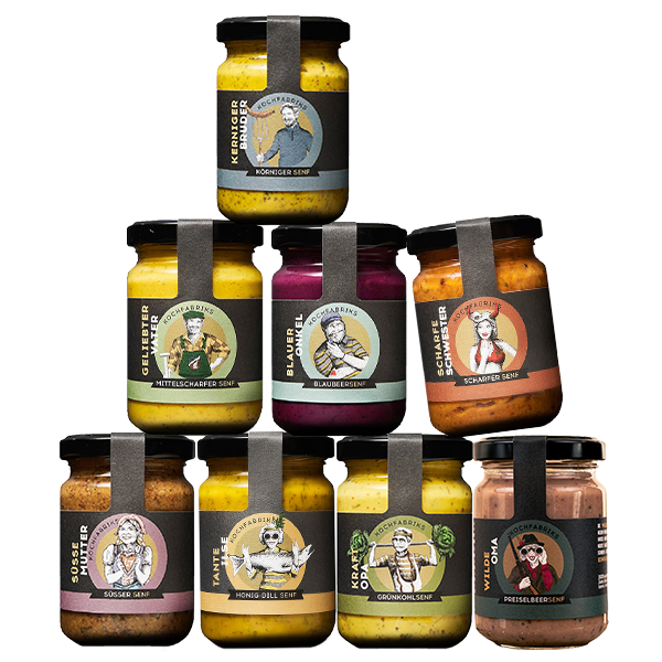 Wie in jeder Familie ist auch in KOCHfabriks Senffamilie immer was los. Treffen sie zusammen, wird es bunt. Sie harmonieren an sich gut und stehen sich sehr nahe, jedoch hat jeder seinen eigenen unverwechselbaren Charakter. Was sie alle eint: Die Senffamilie kommt ohne Konservierungsstoffe aus und ist glutenfrei.
