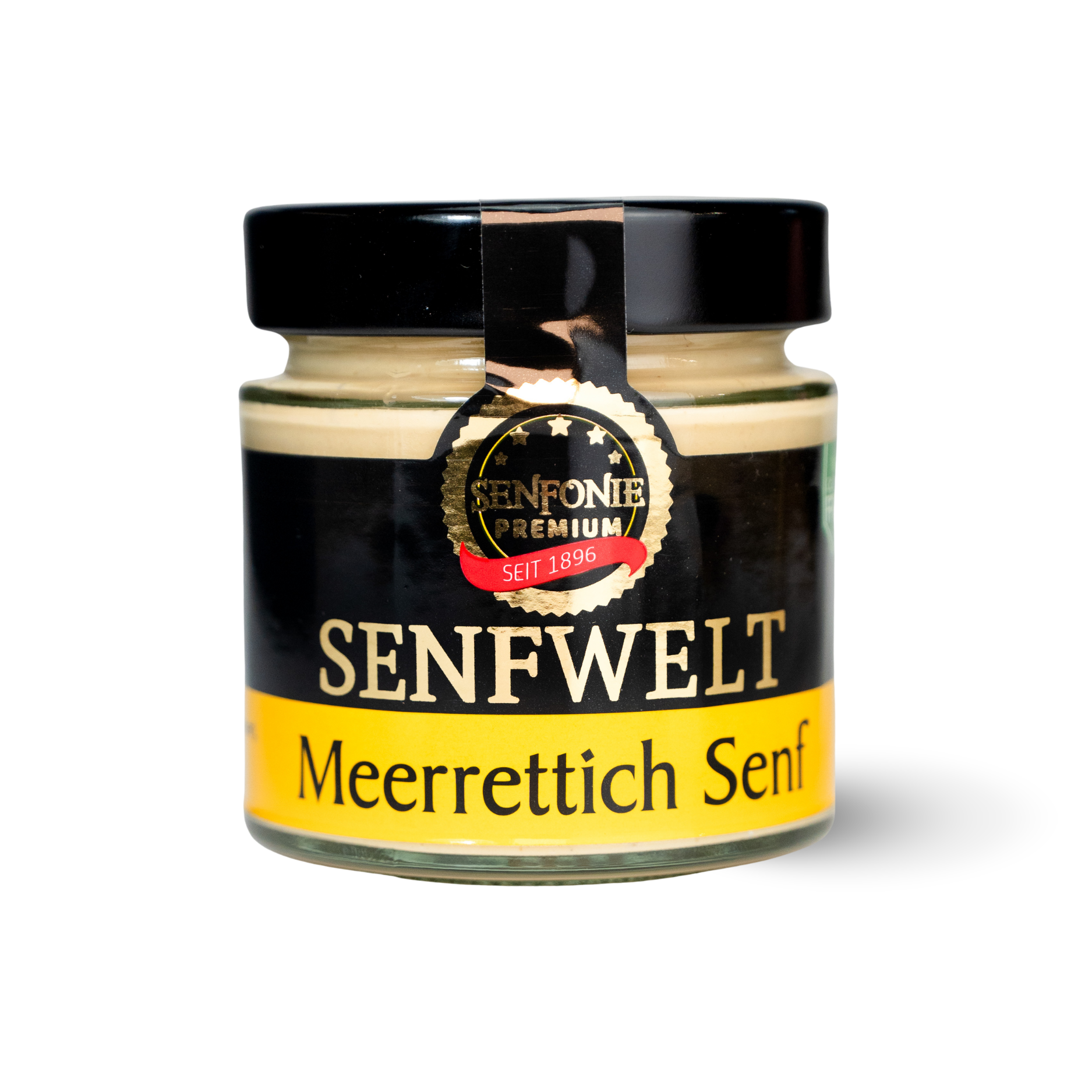 Zwei, wie Pech und Schwefel! So ergibt sich aus der Zubereitung von Senf mit Meerrettich eine scharfe Kombi! Premium Meerrettich Senf findet sicher einen festen Platz auf deiner Speisekarte. Senf verfeinert mit 20 % der kräftigen Wurzel, eignet sich hervorragend zu Wildgerichten, Rindfleisch, Sauerfleisch, Räucherfisch oder zur Zubereitung einer feinen Meerrettichsauce. Raffiniert mit Quark oder Frischkäse kannst du unseren würzigen Premium Meerrettich Senf auch easy zur Brotzeit dazustellen. Premium Meerrettich Senf ist eine Delikatesse zusammen mit Tafelspitz.