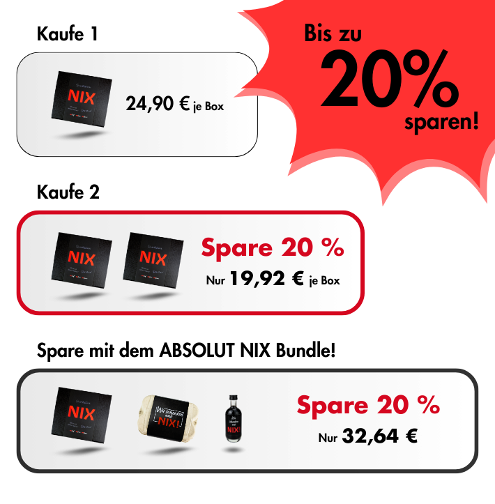- 20 % im Bundle sparen: NIX Box, "Wir schenken uns nix" Geschenkset & NIX Kräuterlikör