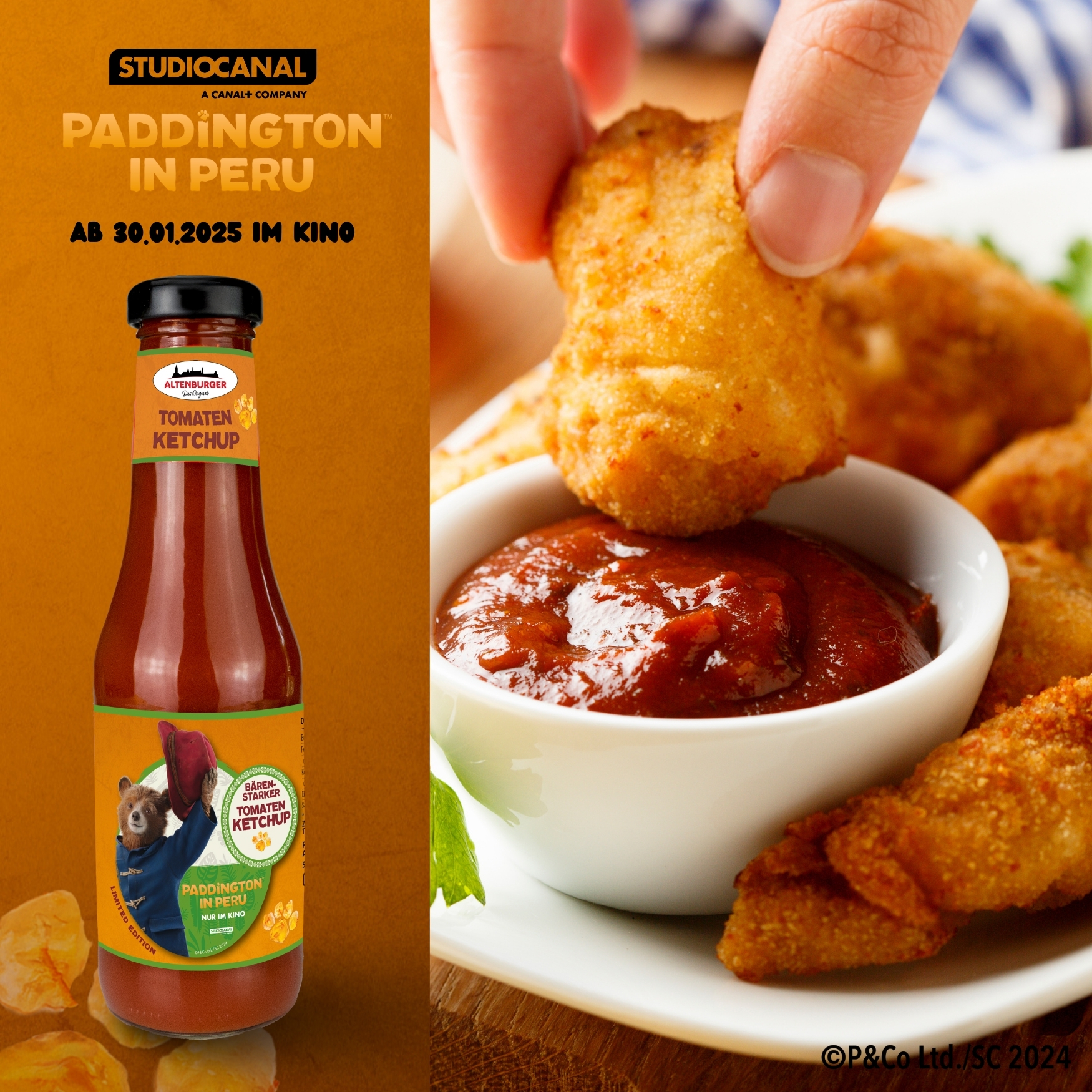Mit unserem „Paddington in Peru“ Ketchup werden eure kleinen Abenteurer garantiert satt und glücklich! Ob für Pommes, Nuggets oder das Lieblingssandwich – fruchtiger Ketchup macht jede Mahlzeit zum Kinogenuss. Perfekt für alle kleinen Entdecker, die wie Paddington das Beste verdienen – 100 % natürlich, ohne Schnickschnack! 🥪🍟✨