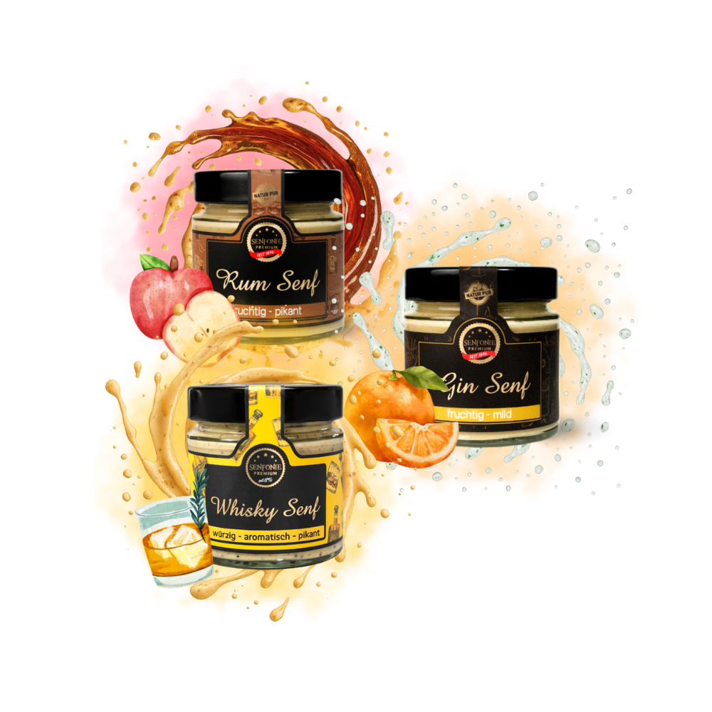 💎 Exquisite Kombinationen: Edle Destillate in fein abgestimmten Senfkompositionen – für echte Genießer.