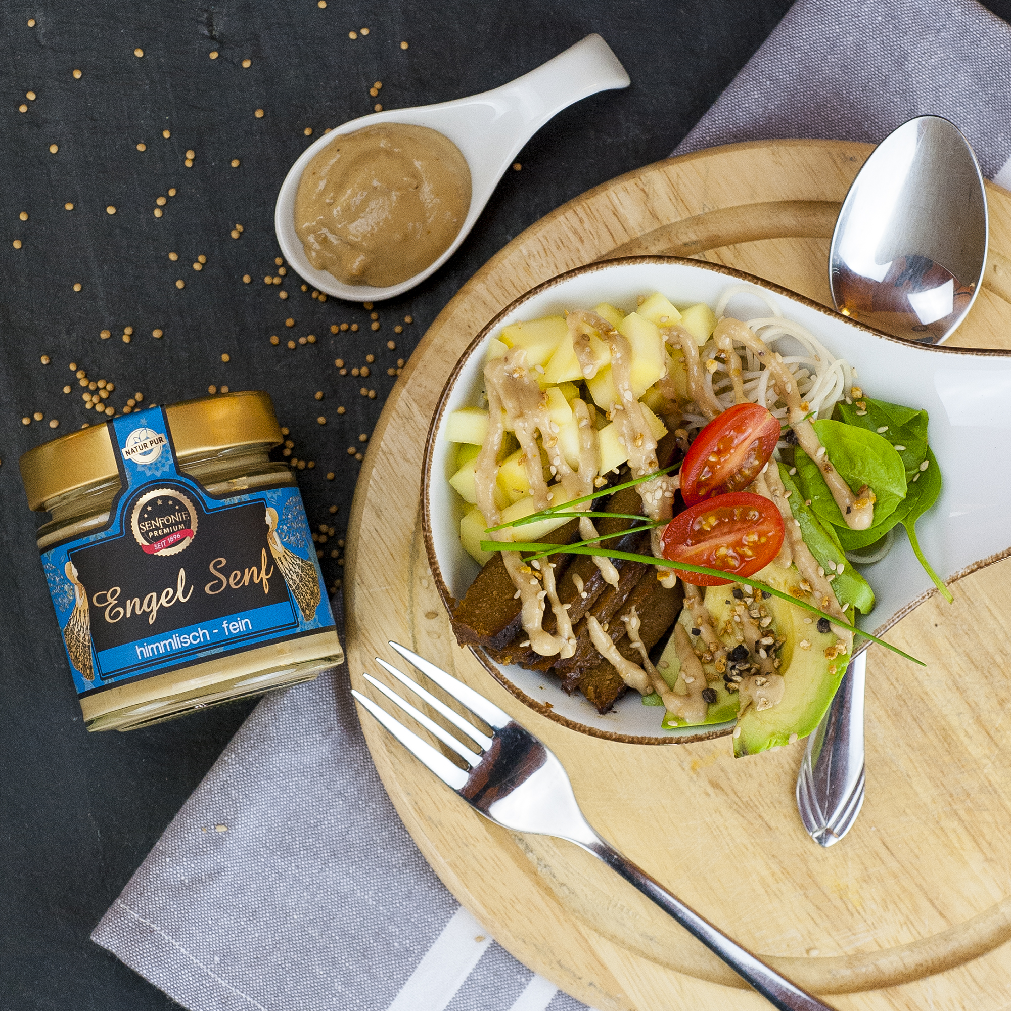 👼 Engel Senf: Mit ganzen Senfkörnern und zarter Würze – ein himmlischer Genuss für jeden Anlass.