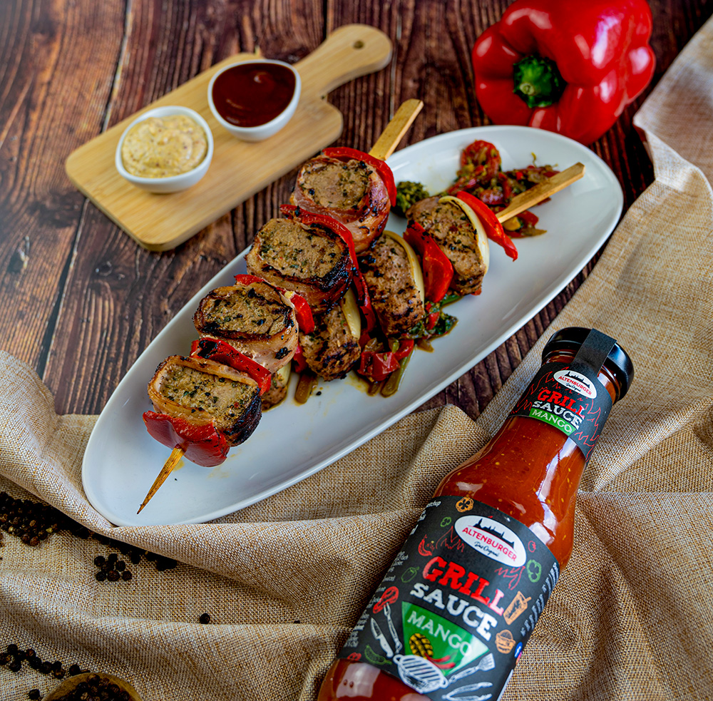 Diese würzig-glasierten Spieße mit unserer fruchtigen Mango Senfsoße sind die perfekte Abwechslung auf dem Grill – oder in der Pfanne, wenn das Wetter mal nicht mitspielt.Ob mit klassischer Original Thüringer Bratwurst oder in der vegetarischen Variante mit Tofu: Diese Kombi aus rauchigem Aroma, süßer Mango und feiner Schärfe bringt gute Laune auf den Teller. Ideal für laue Abende, spontane Gäste oder deinen nächsten BBQ-Moment!
