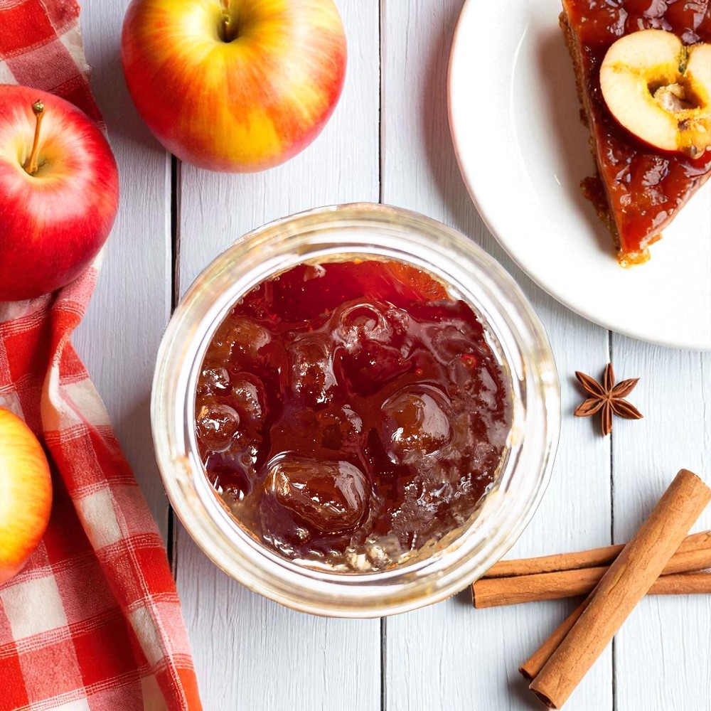 80 g Bratapfel Chutney mit 1 EL Honig, 3 EL Wasser und 1/4 TL Wintergewürz verrühren. Äpfel halbieren, entkernen und in sehr dünne akkurate Scheiben hobeln und mit etwas Zucker bestreuen.