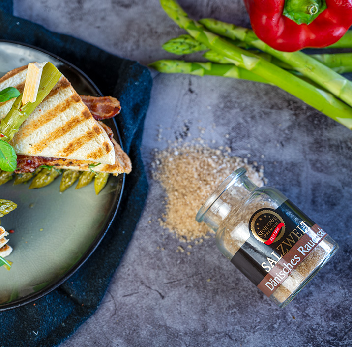 Zermahle 2 TL Rauchsalz, presse den Saft einer halben Zitrone und hacke die Knoblauchzehen klein und vermenge alles mit 2 EL Premium Magic Dust Gewürzmischung und 2 TL Bergpfeffer.