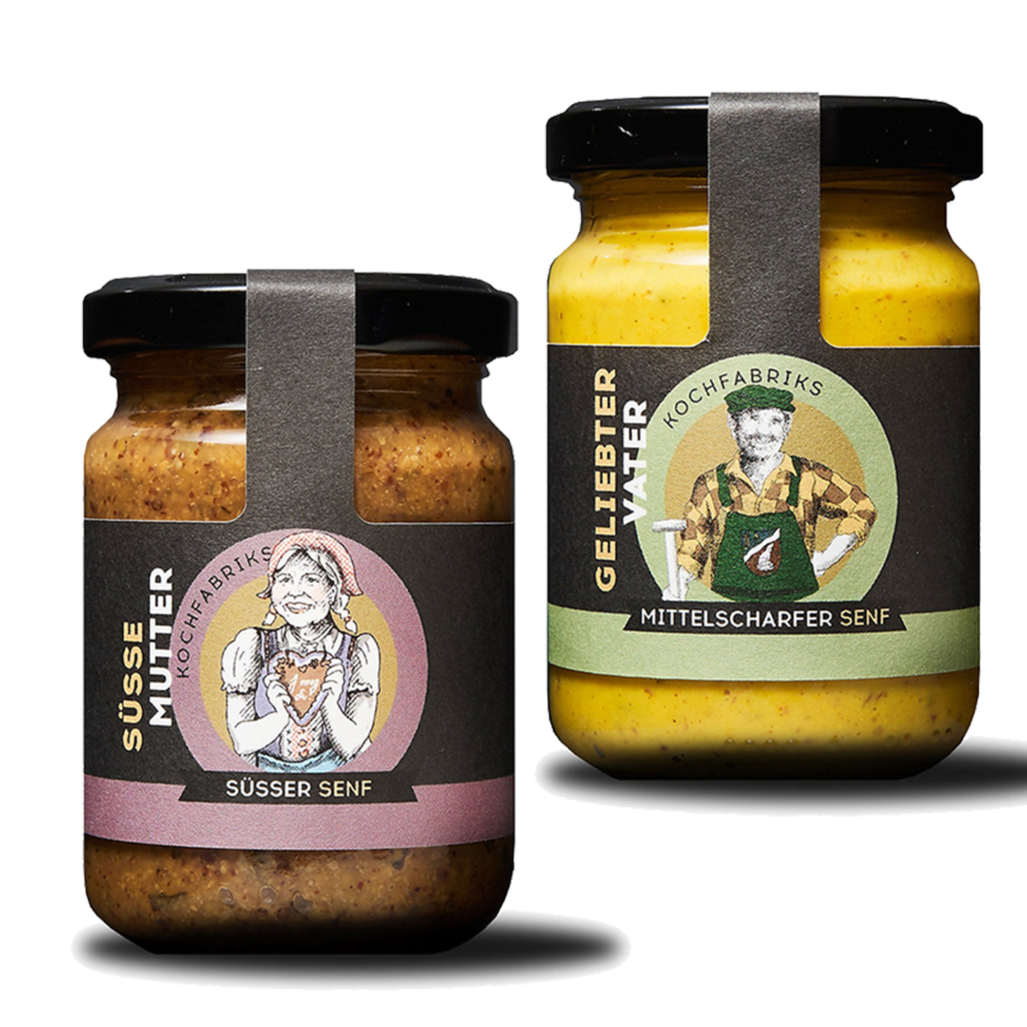 Hol dir jetzt das Senf Set "Süße Mutter" & "Geliebter Vater" und genieße den unverwechselbaren Geschmack des Nordens bei dir zu Hause!