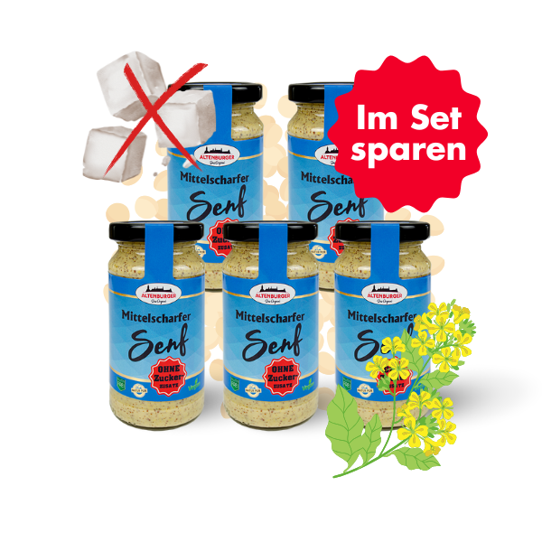 Egal ob scharf, mittelscharf, süß oder körnig: Bei uns findest du den Senf, der zu dir passt. Unser Sortiment umfasst neben Klassikern wie scharfem und mittelscharfem Senf auch leckere Variationen, fruchtige Senfaufstriche und bunte Senfsorten wie den blauen Trabi-Senf. Mit über 300 verschiedenen Sorten bieten wir eine einzigartige Vielfalt. Seit 1992 setzen wir auf ausgewählte Rohstoffe, Nachhaltigkeit und höchste Qualität. Unser traditionelles Herstellungsverfahren mit schonender Kaltvermahlung bewahrt alle wichtigen Geschmacksträger und ätherischen Öle im Senf.