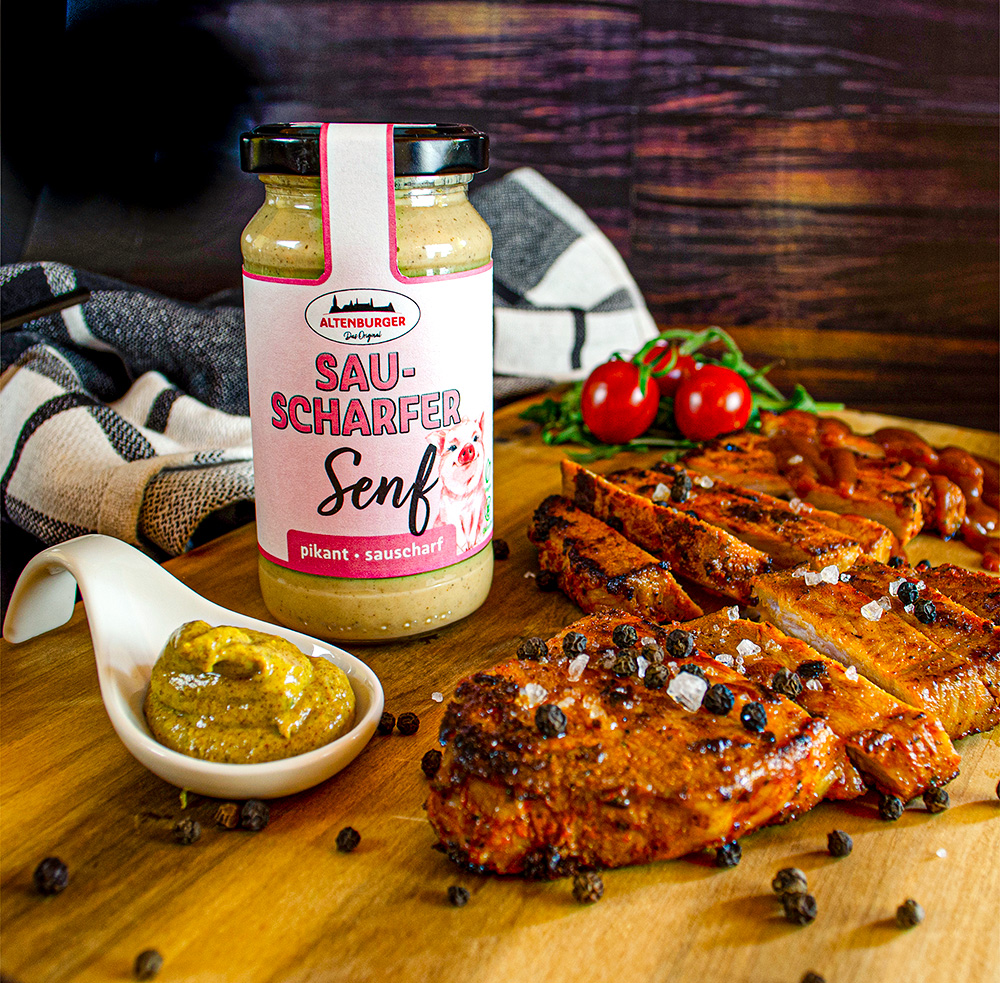 Egal ob scharf, mittelscharf, süß oder körnig: Bei uns findest du den Senf, der zu dir passt. Unser Sortiment umfasst neben Klassikern wie scharfem und mittelscharfem Senf auch leckere Variationen, fruchtige Senfaufstriche und bunte Senfsorten wie den blauen Trabi-Senf. Mit über 300 verschiedenen Sorten bieten wir eine einzigartige Vielfalt. Seit 1992 setzen wir auf ausgewählte Rohstoffe, Nachhaltigkeit und höchste Qualität. Unser traditionelles Herstellungsverfahren mit schonender Kaltvermahlung bewahrt alle wichtigen Geschmacksträger und ätherischen Öle im Senf.