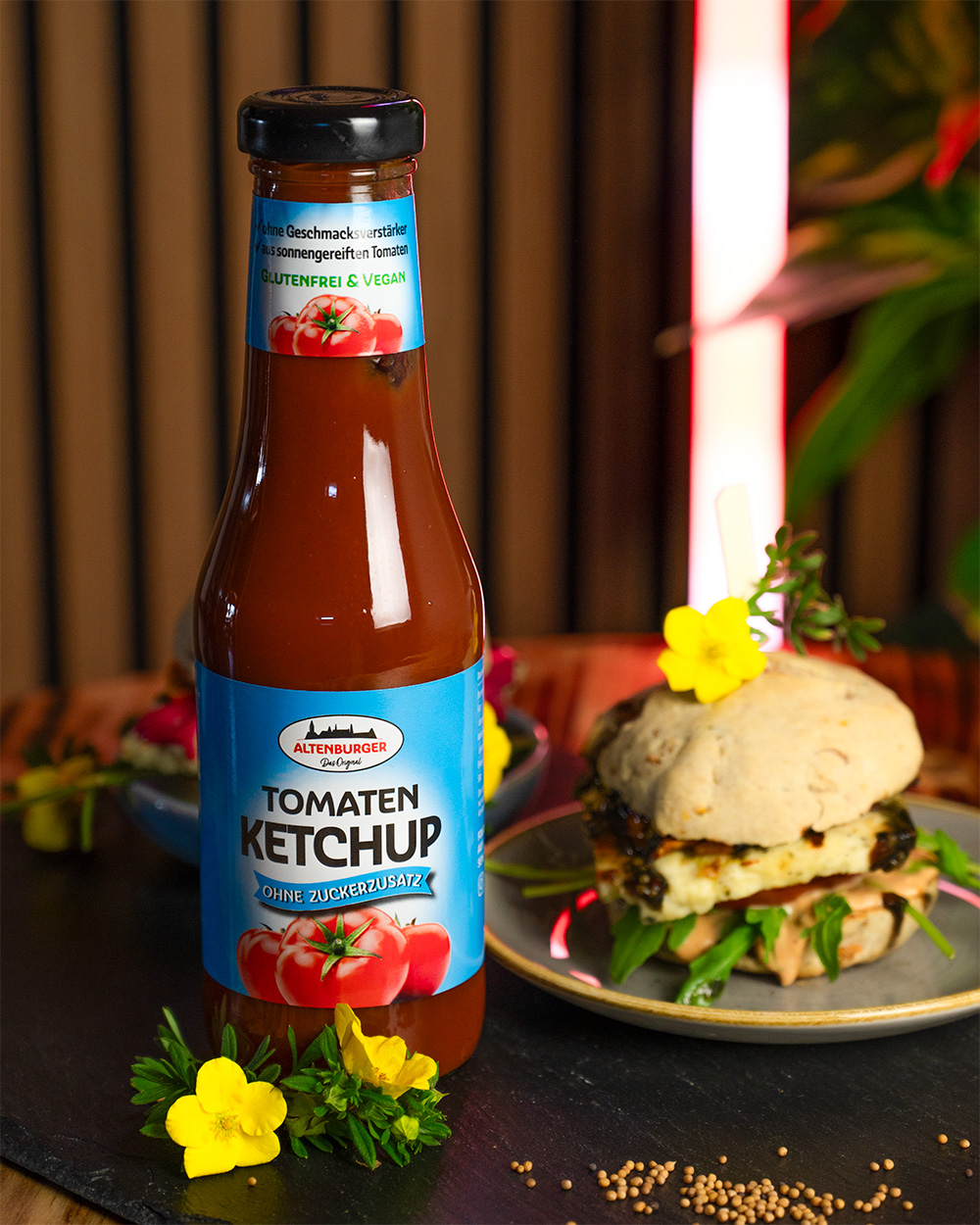 Erlebe Tomatenketchup, wie er sein sollte: intensiv, fruchtig und ohne Zuckerzusatz. Unser Ketchup wird aus sonnengereiften Tomaten hergestellt, mit feinen Gewürzen abgeschmeckt und kommt ganz ohne künstliche Süßstoffe oder Geschmacksverstärker aus. Ein ehrlicher Genuss, der nicht nur deine Geschmacksknospen, sondern auch dein gutes Gewissen erfreut. Vielseitig & unvergleichlich: Egal, ob du ihn zu Pommes, Schnitzel, Fleisch, Pasta oder als Geheimzutat in Saucen & Dips verwendest – dieser Ketchup hebt deine Gerichte auf ein neues Level. Fruchtig-würzig und einfach perfekt für alle, die natürlichen Geschmack lieben.