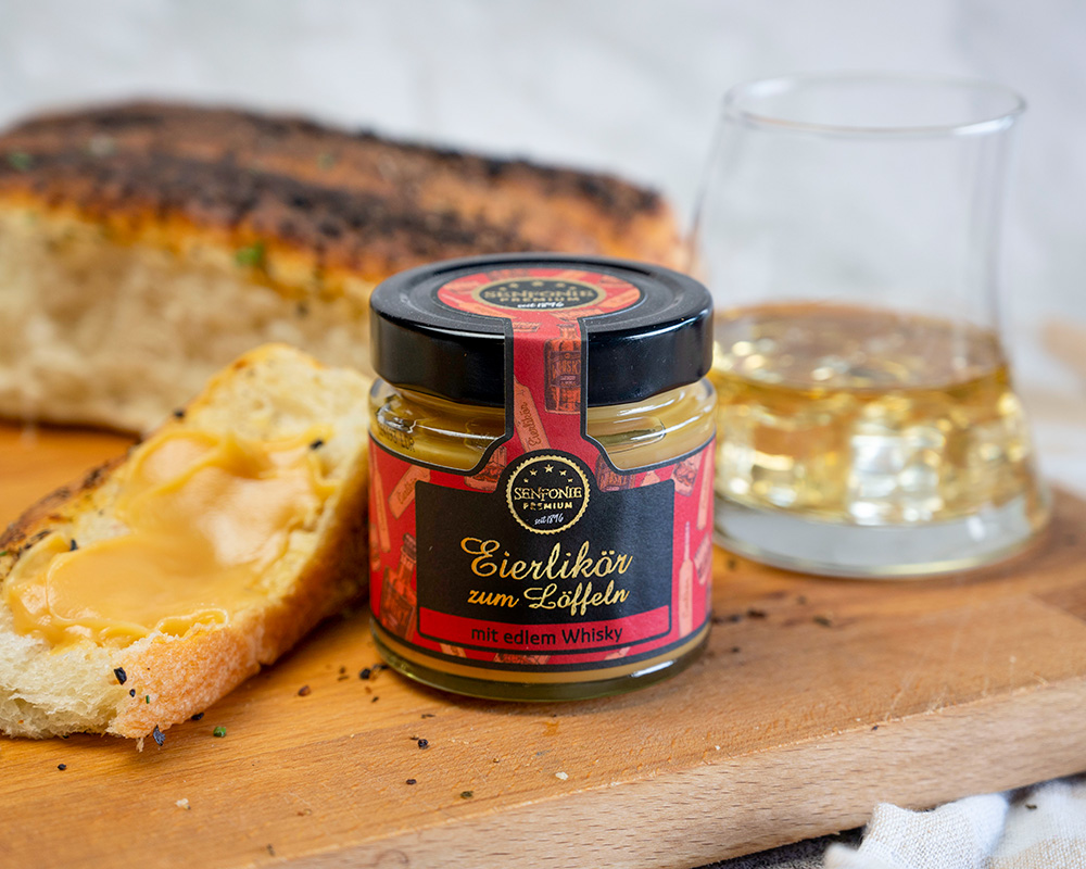 Beginnen wir mit unserem cremigen Eierlikör, der so verführerisch ist, dass man ihn einfach löffeln muss. Verfeinert mit einem edlen Whisky, verschmilzt die Süße des Likörs mit der Tiefe des Whiskys zu einem unwiderstehlichen Geschmackserlebnis. Doch das ist nur der Anfang. Für die Liebhaber von würzigen Aromen haben wir einen mittelscharfen, groben Whisky-Senf kreiert. Die kräftige Senfnote trifft auf den rauchigen Charakter des Whiskys und sorgt für eine Geschmacksexplosion, die perfekt zu Fleisch, Käse oder einfach pur genossen werden kann.