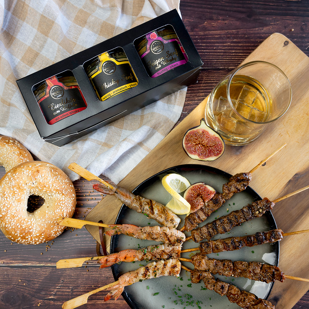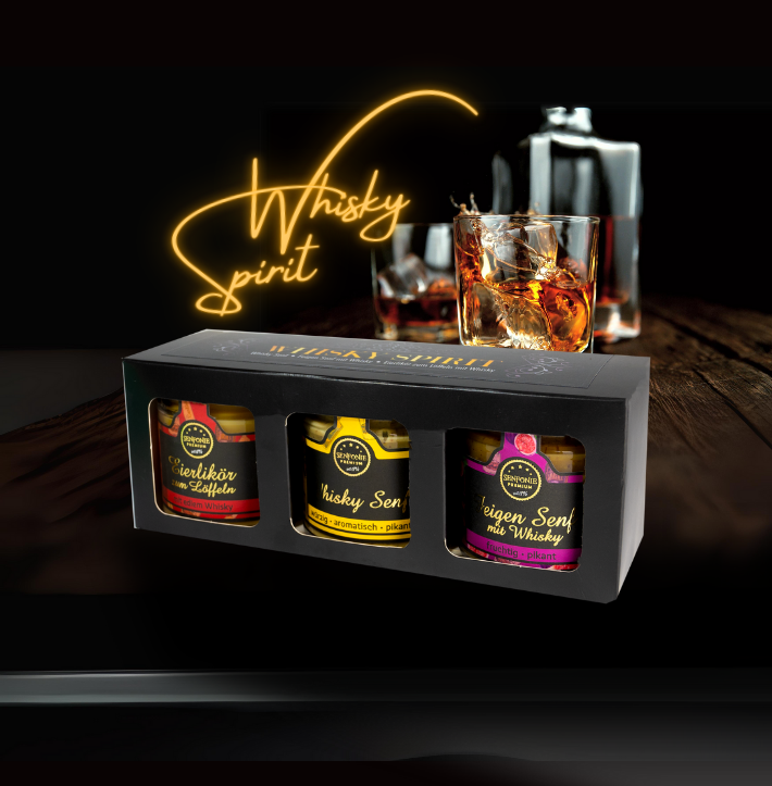 Entdecke unsere exklusive Whisky-Box, die deine Sinne verführt: Ein cremiger Eierlikör zum Löffeln, verfeinert mit edlem Whisky. Dazu ein kräftiger, grober Whisky-Senf und ein fruchtiger Feigen-Senf mit feiner Whisky-Note. Perfekt für Genießer, die das Besondere lieben – ein außergewöhnliches Geschmackserlebnis in jeder Hinsicht!