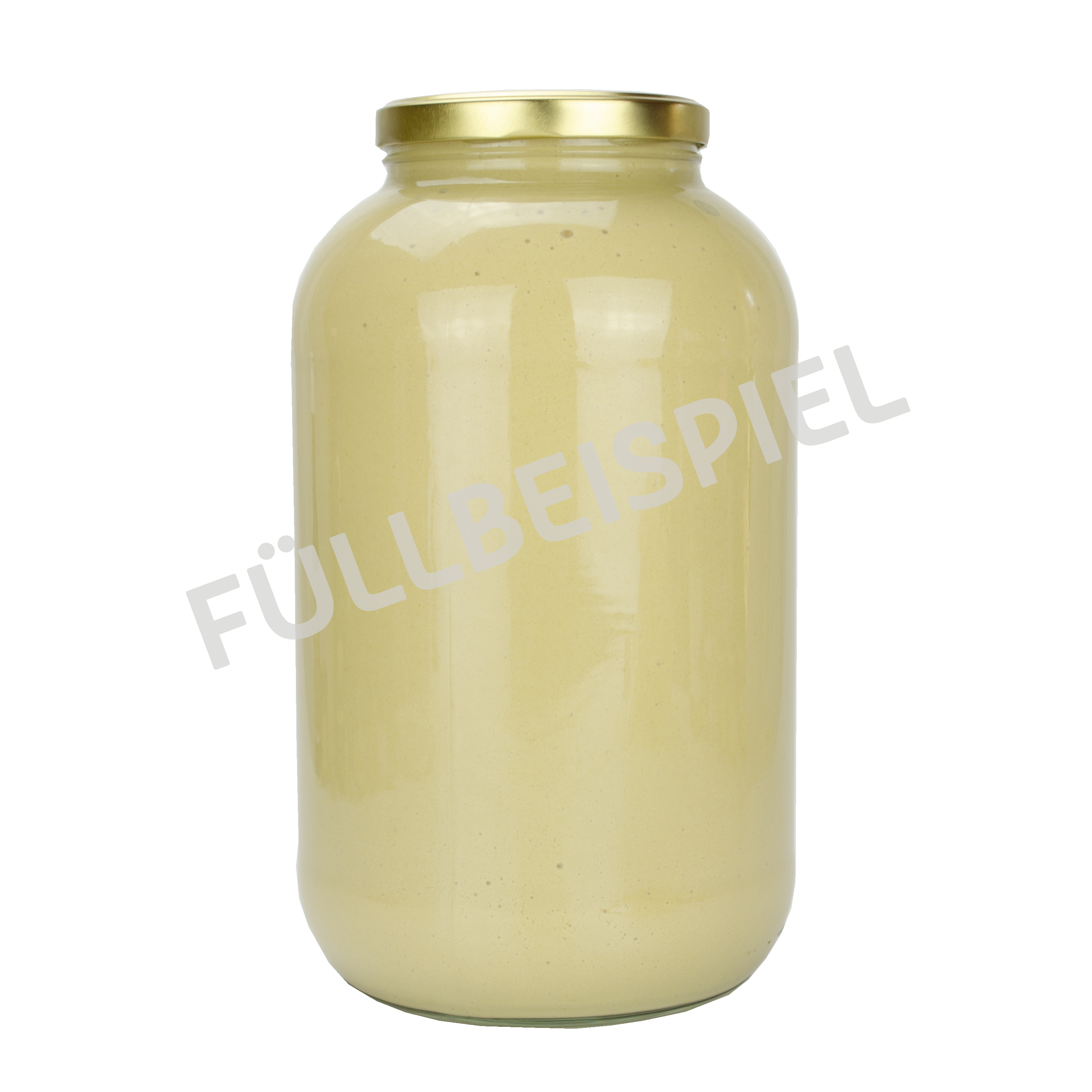 Die hochwertige XXXL Glas hat ein Volumen von 4250 ml inkl. goldenem Deckel. Ideal zum Befüllen mit Koch- und Backzutaten. Deckel einfach auf die Öffnung des Glases schrauben.